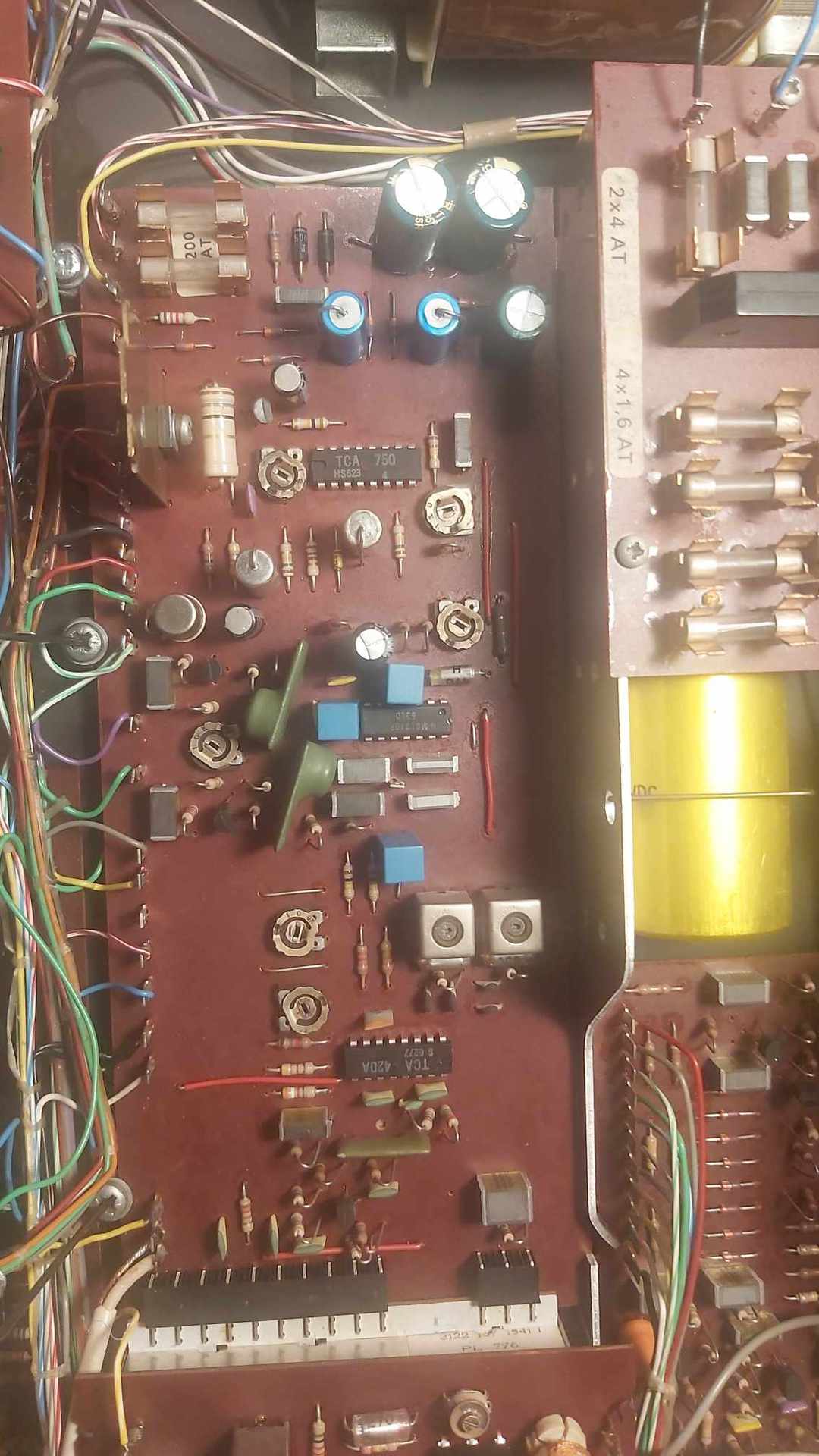 4. A TCA750-es 5-ös lába megkapta a 22µF kondit, és teljesen stabil. A TR4, ami BC173 volt, kicseréltem BC211-re, ez már 300mA-es típus - de csak a javaslatok alapján, nem volt túlzottan meleg.