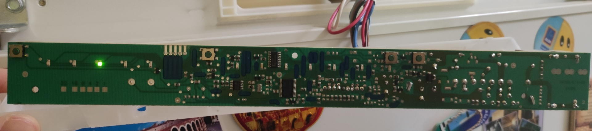 A panel hátulja így néz ki. Azt bánom, hogy magához a leolvasztó egységhez nem lehet roncsolás mentesen hozzá férni.