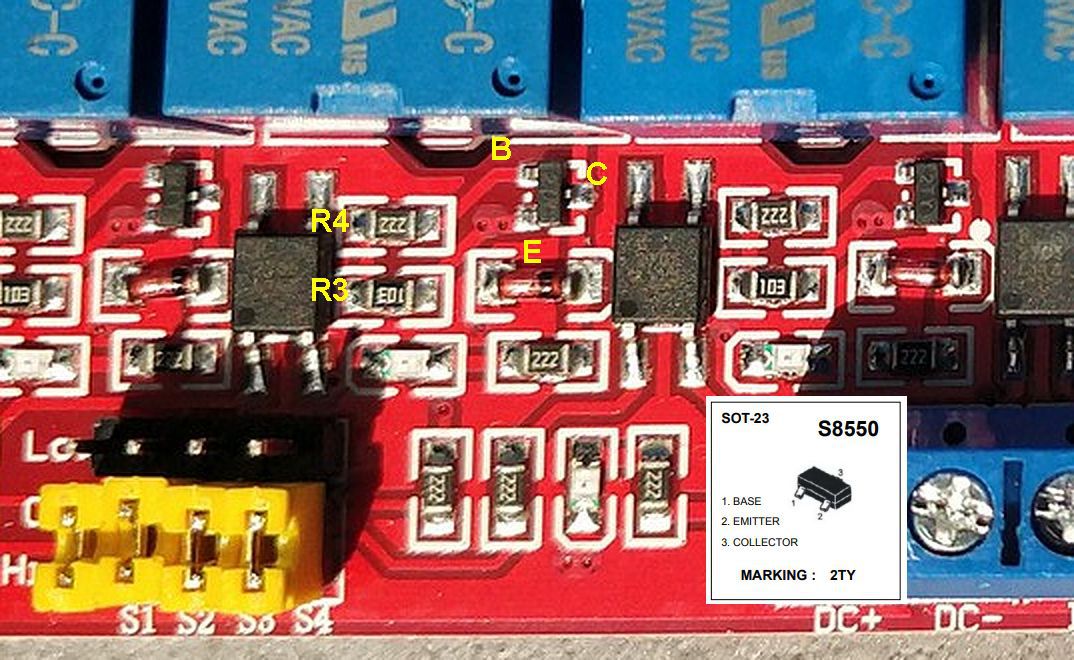 Alapvetően, többször el lett mondva, ameddig nem kötöd össze a két GND-t (test, negatív táp, stb.) normális működés nem várható. Pontosabban úgy működik ahogyan az adott helyzetben kell, de nem feltétlenül ahogyan elképzelted/szeretnéd. Pár infó a találgatáshoz: 222 -> 2k2 ellenállás 103 -> 10k ellenállás 2705 -> AC bemenetű optocsatoló JQC3F-5VDC -> Relé, egy morze érintkezővel. Tekercsellenállás 70 Ohm. 2TY -> S8550 PNP tranzisztor Hengeres ízé -> Dióda, a relé tekercsével párhuzamosan szokás kötni. Szürke téglalap -> LED, direkt nincsen rajta felirat Az én bajom az, hogy még senki nem állt elő olyan rajzzal, ami teljes mértékben (csatornánkénti darabszám) összhangban van a fényképpel. És így ami korábbi felvetés volt, nem tudjuk megmondani, hogy van-e jumperek és a kimenetek olyan együttállása (tervezési hiba), ami kinyírja a uC-t. Mondjuk ez nem volt kérdés, csak szorgalmi feladat.