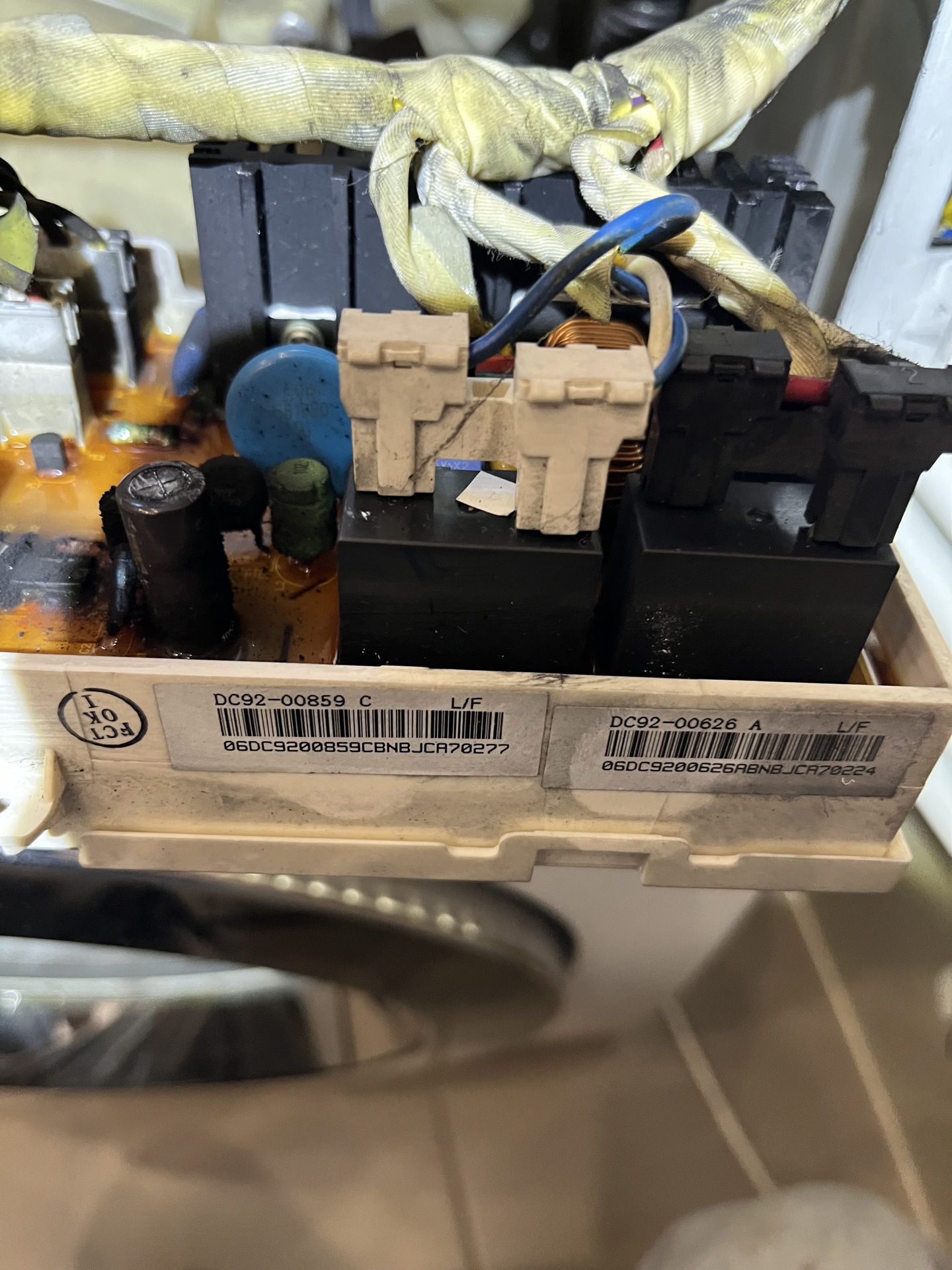 Ki kell csomagolni azt az elektronikát a kiöntő gyantát lekaparni és méregetni. Rajzot nem igen fogsz találni. A samsung híres a forrasztási hibákról. Még az is lehet, hogy csak el van repedve valahol. Általában a reléknél, táp IC nél, Motormeghajtó IC nél...... de lehet valami rossz érintkezés, kábeltörés is a vezetékekben.