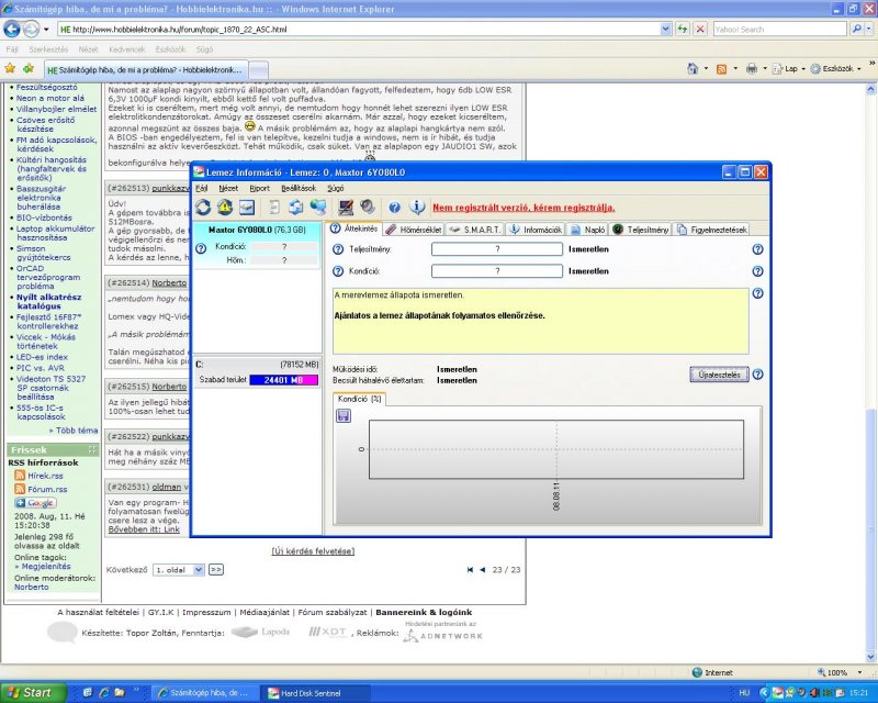 Később sem jelentek meg az adatok? Mert ez úgy néz ki mintha nem ismerné fel a vinyót Nekem is egy maxtorom van, kb 4-8 éves lehet, 60GB és a száma is majdnem ugyanaz mint a tiedé csak a 8as helyett nekem egy 6os van, és tökéletesen kijelzi az adatokat. Viszont a hátralévő élettartamra már közel egy éve 131 napot ír...