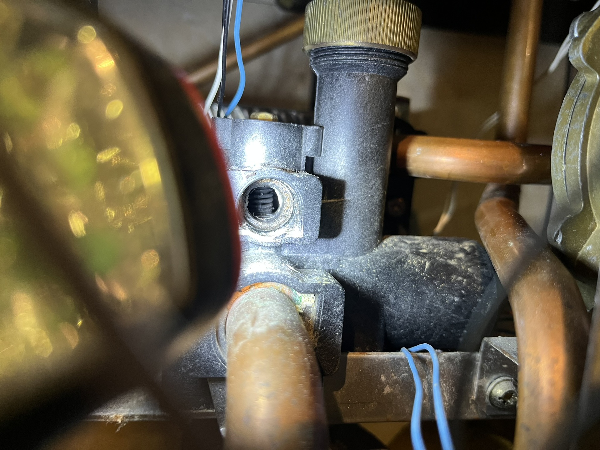 VIM: Csak a kis tengelyre fújtam, a vége felől, nem oda ahol a rugó látszik. De nem vettem észre hogy a fűtéssel probléma lett volna, lehet azért nem tudtam először benyomni, mert ...mert... nem mertem erősen, illetve nem jó eszközzel. A csavarral szépen lehetett mozgatni. Nem akadozott, a rugó visszatolta. Most nem, de a múlt héten csekkoltam a tágulási tartályokat, nem voltak rendben, akkor beállítottam. Most nem néztem. De a kis kunkori csövet megint ellenőriztem, kapott 20%os ecetet, műanyag pálcával is néztem - nincs benne semmi. A tartályba is visszafújtam a csatlakozásánál, nem tűnt eldugultnak. Néztem még más csövet is, amit a múltkor nem bontottam.