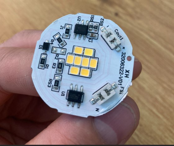 Értek mindent… ebben a ledben amit csatoltam is képet nem volt egyértelmű, hogy hogy van megoldva az egyenirányítás mert csupán a két egyforma chip van, de ahogy végigkövetem a kapcsolást az egyikben van greatz, meg van egy 1,5µF pufferkondi is, csak az a panel tuloldalán van.