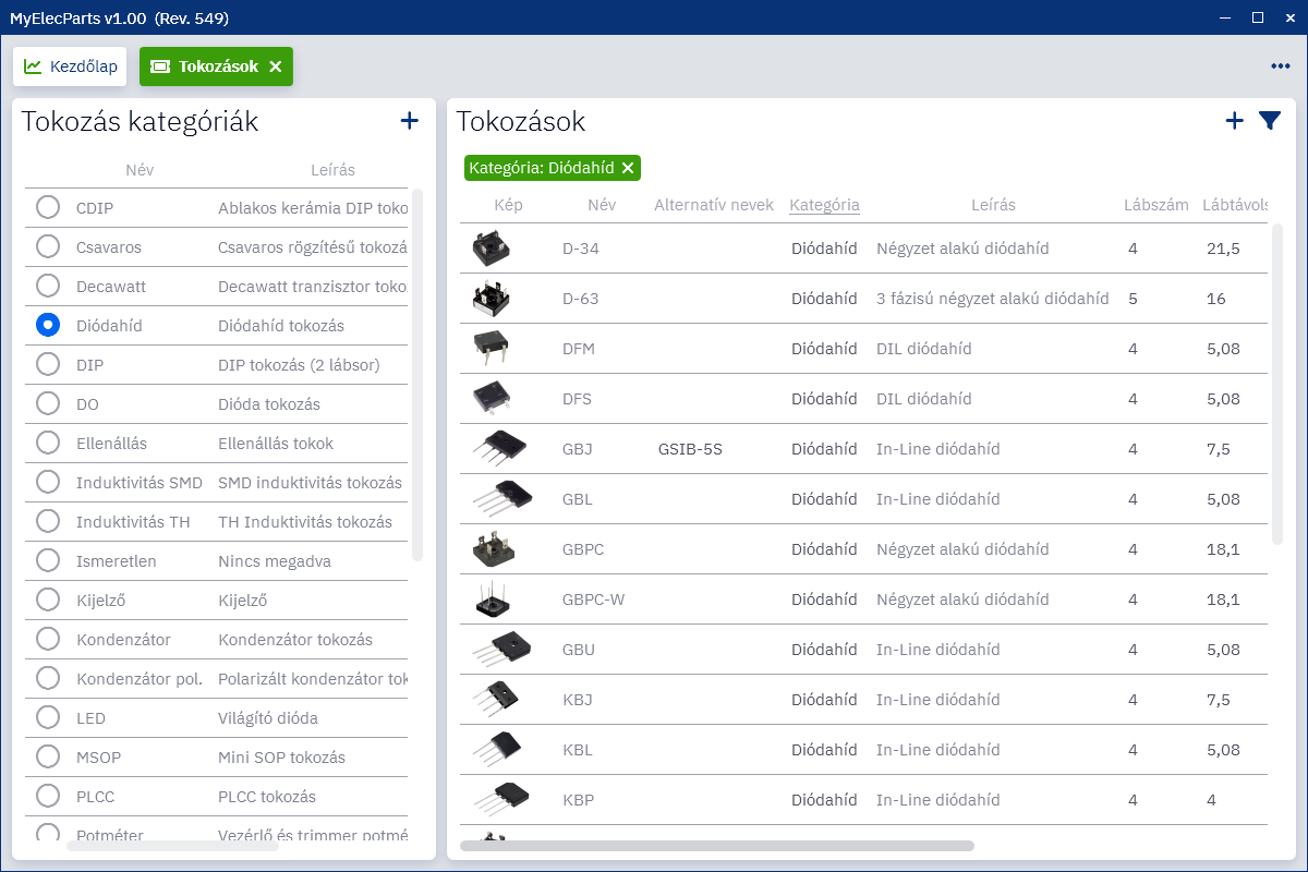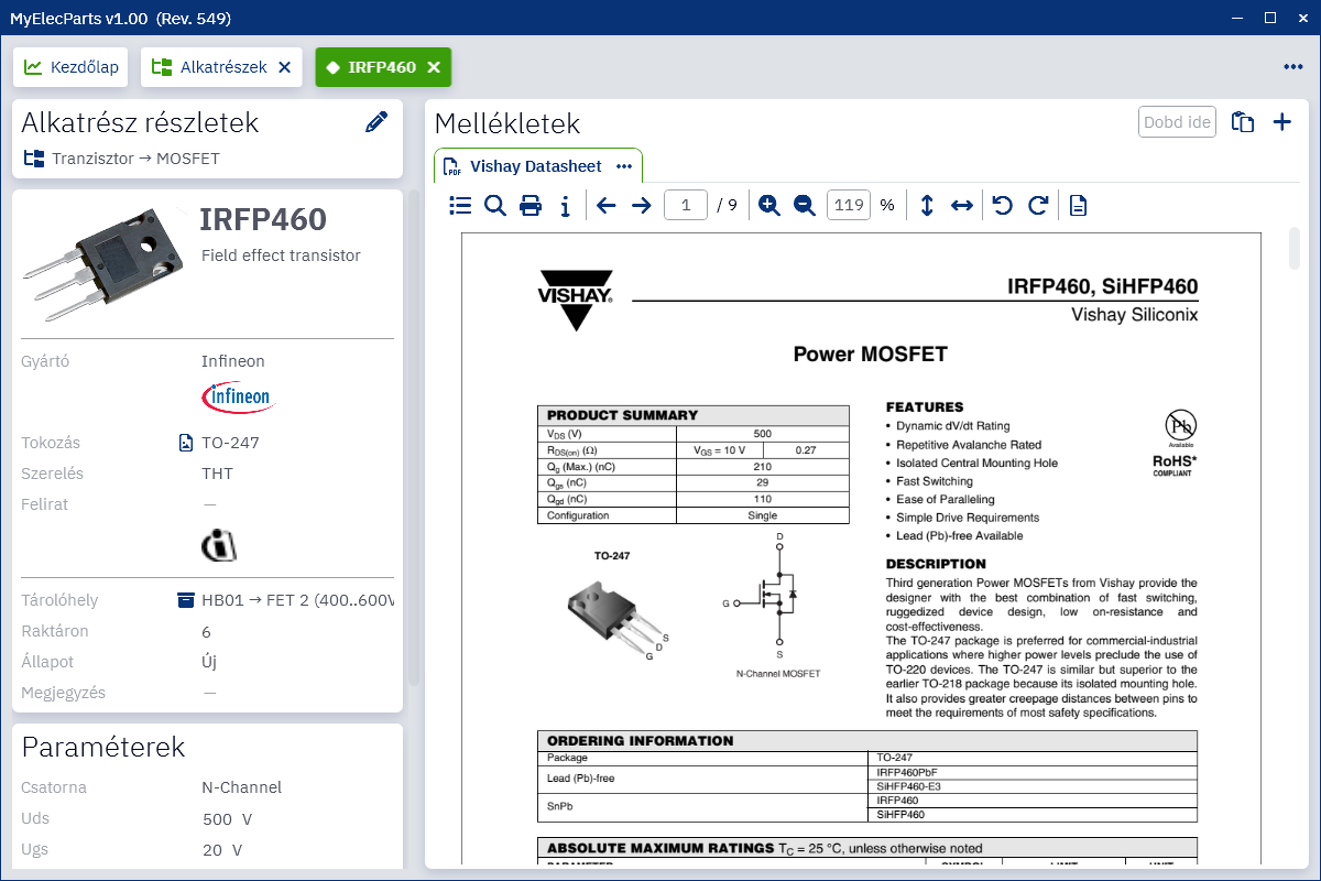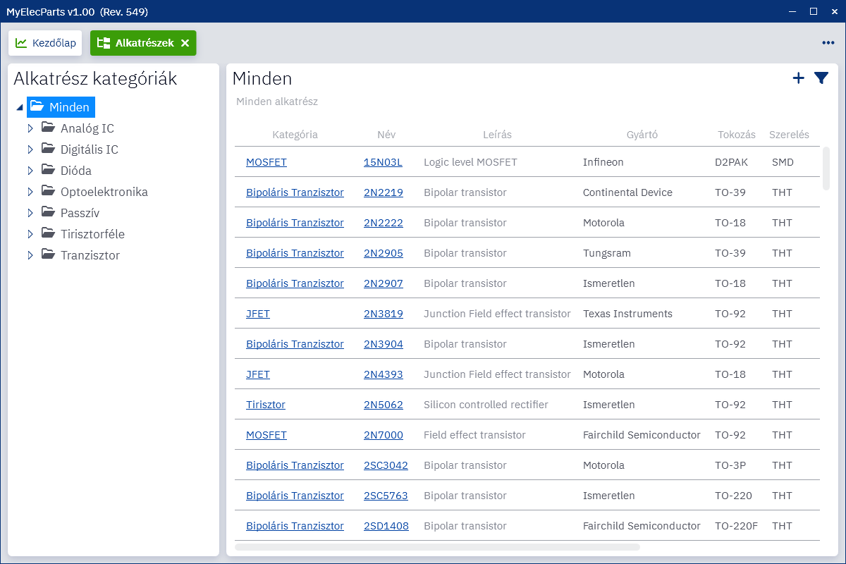 Elkészültem az elektronikai alkatrész kereső és nyilvántartó programom első nyilvános verziójával (MyElecParts v1.00). A program teljesen ingyenes, használjátok egészséggel.