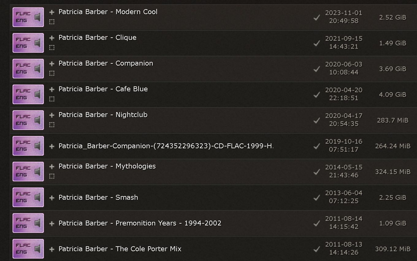 Rákerestem, hogy elméletileg mely lemezei lennének letölthetők Patricia Barber -nek a virágboltból