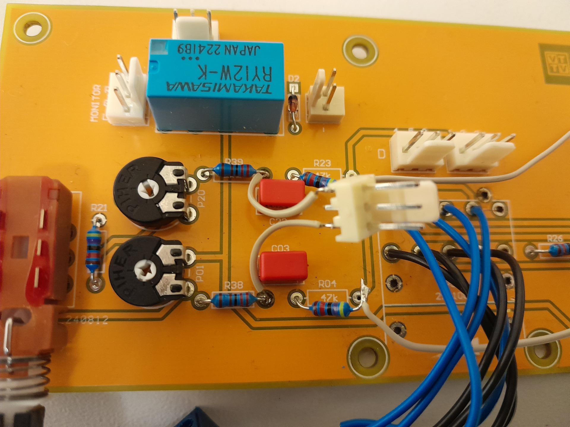A köztes kivezetések egyikére volt kötve a 47k ellenállás, a másikra a 47nF és a kapcsoló.