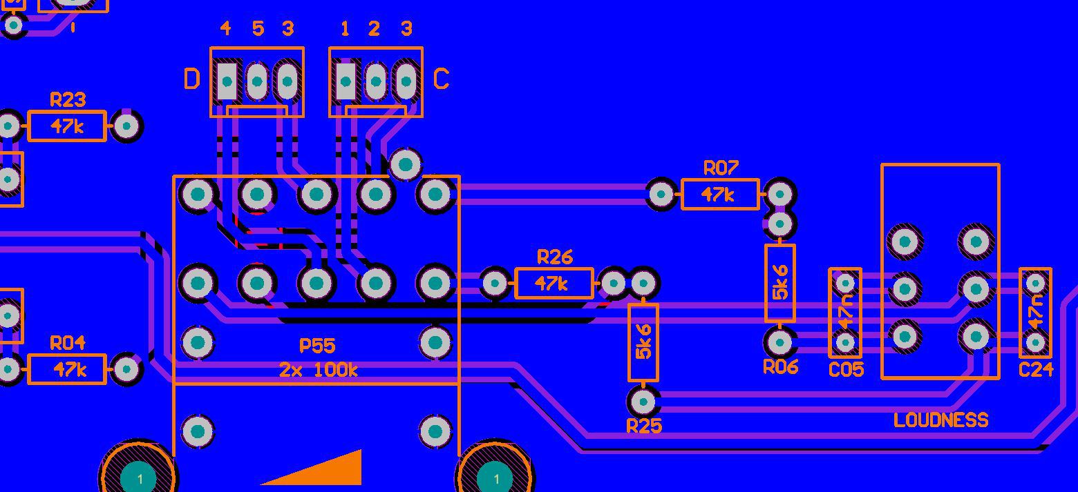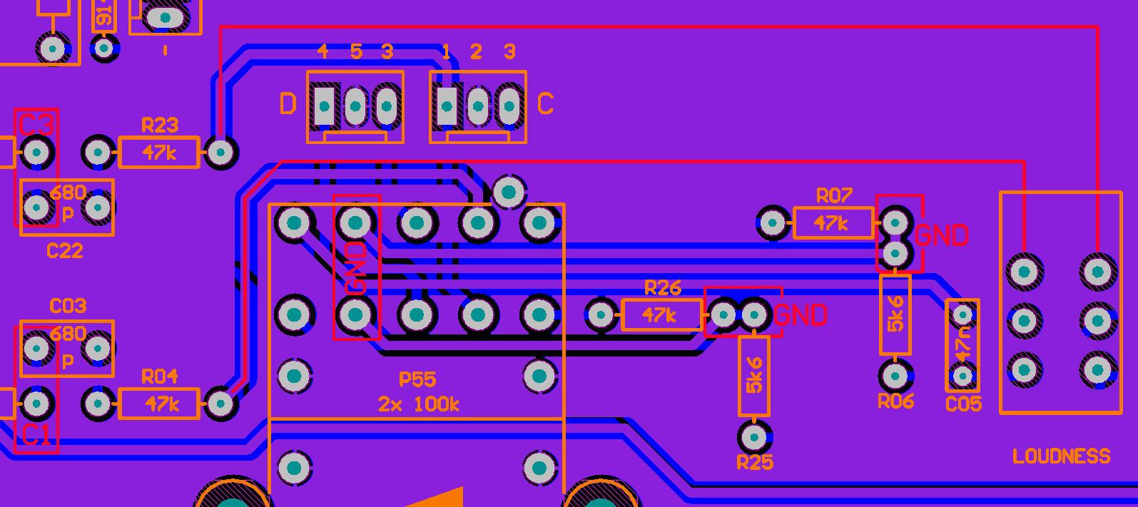 Ha igen, elvégeznénk egy kísérletet. A GND-re menő ágba be kéne iktatni egy-egy soros 12k ellenállást. Ettől a loudness kiágazási pont olyan impedanciájú lesz mint a gyári potinál, így a loudness hatásnak is olyannak kell lennie, ha minden stimmel. A dolog egyetlen szépséghibája, hogy közepesnél nem lehet lejjebb venni a hangerőt.