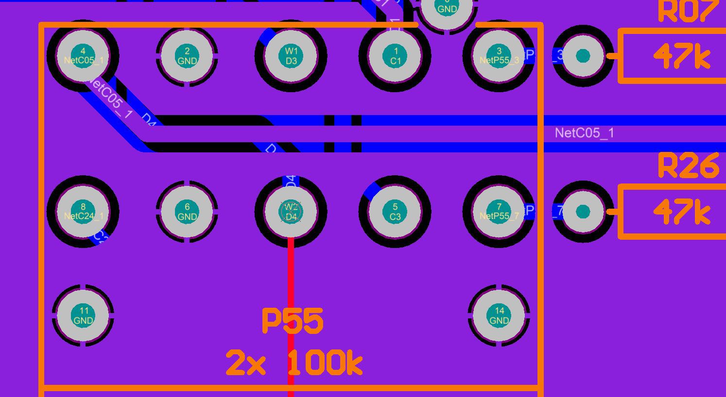 Közben rájöttem, hogy az 5k6 és a 47k nem kap GND-t.