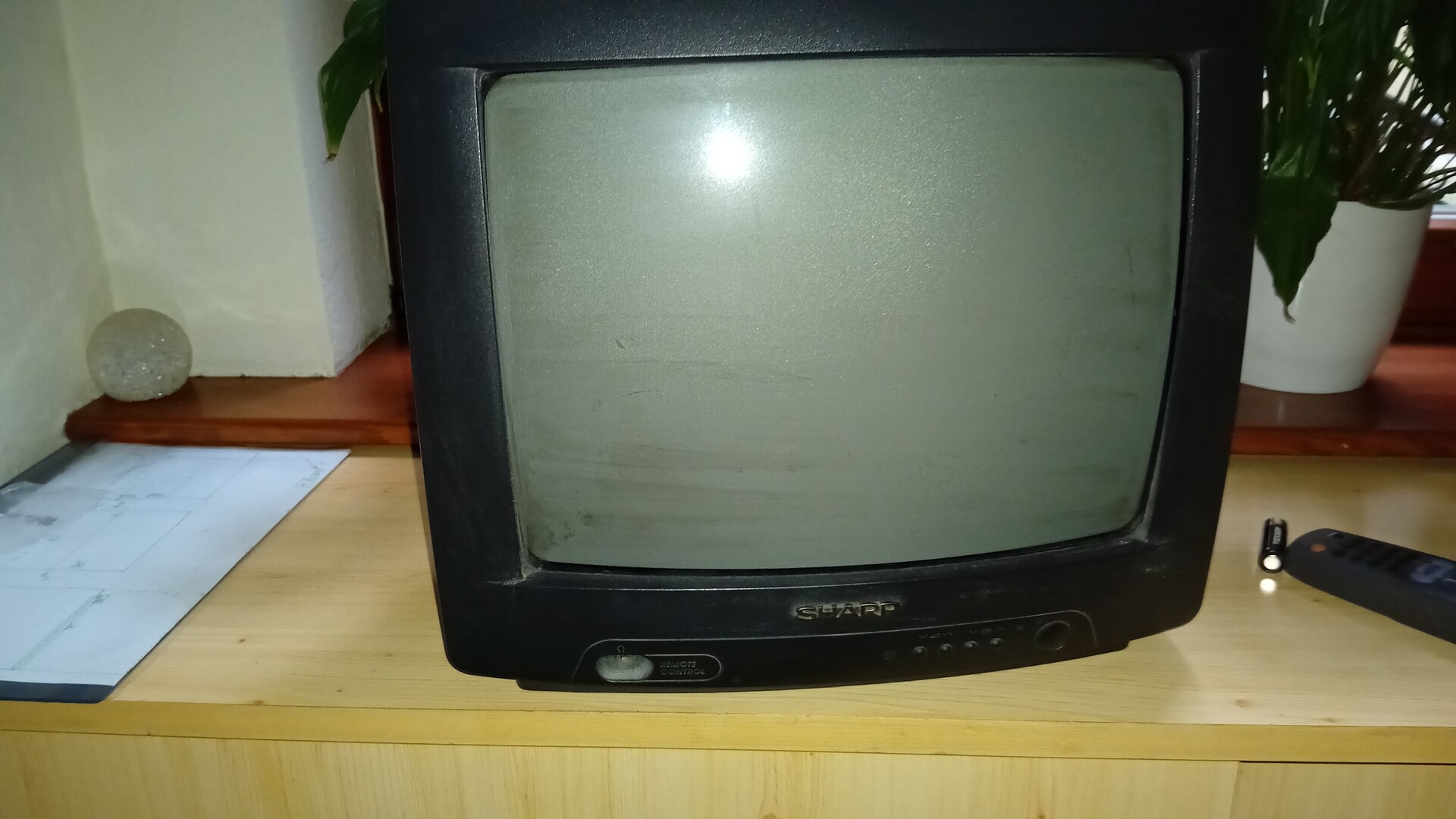Kis méretű képcsöves Sharp tévé a távszabályzójával és saját teleszkópos bot-antennájával ingyen elvihető!