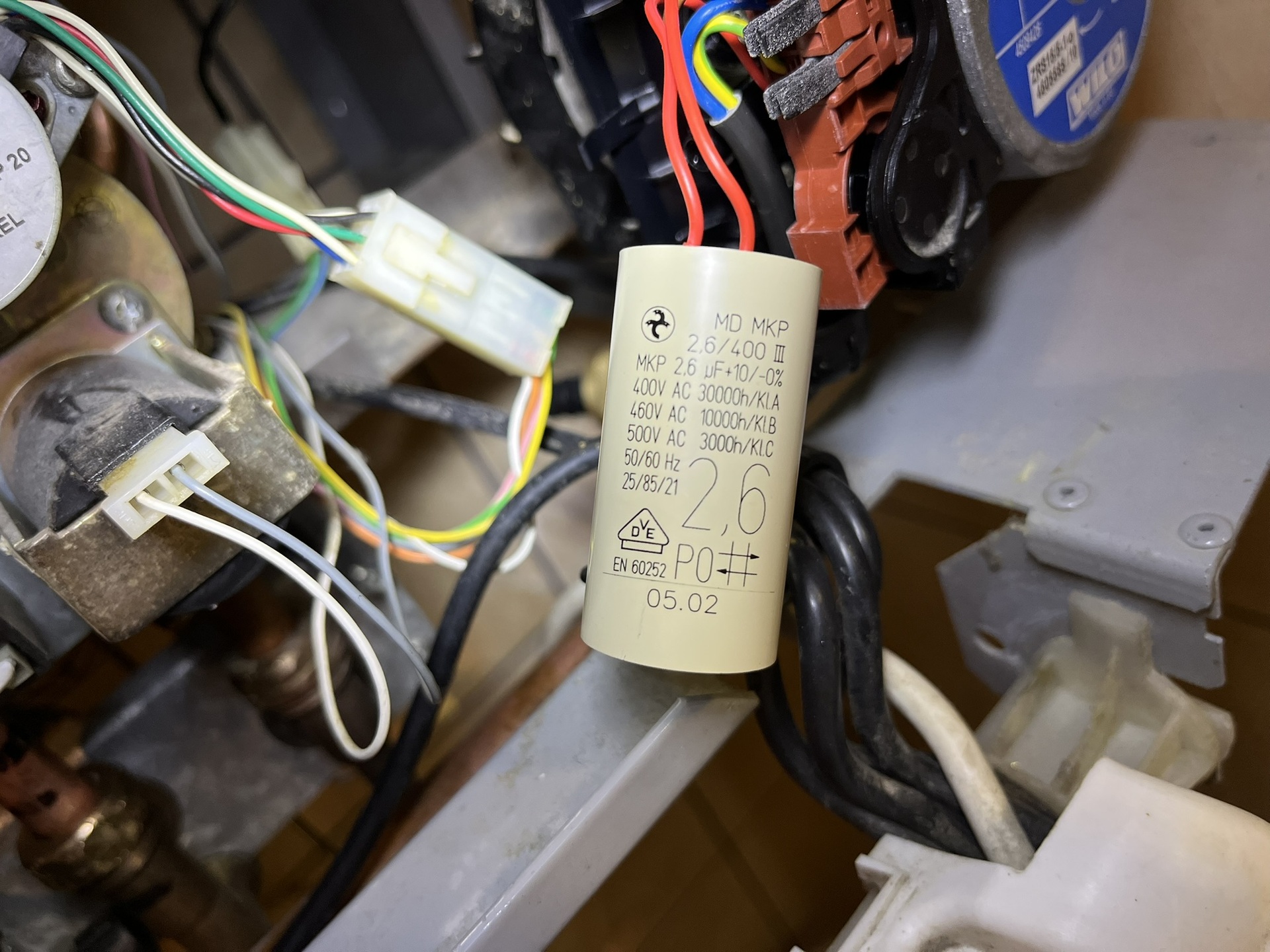 De jó hogy lefotóztad. A mienkben 2µF van és 65Watt-os a szivattyú, a tied más!