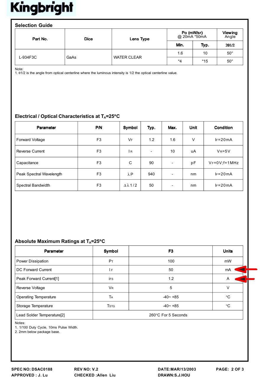 Egy 3mm IR LED adatlap részlet (a HEstrore oldaláról), látható hogy impulzusban jól terhelhető.