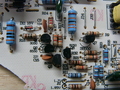 Ha jól látom az MCU vezérli a 8-as lábáról a D882P MosFet tranzisztor, ami a ventillátorokat kapcsolja! Az MCU hoz van külön egy 5V-os stáb IC amit a D7 dióda táplál. A sok elektrolit kondenzátortol nem látni. Az R3 az biztos jól lett leírva, mert teljesen máshol helyezkedik el! Az R8-as fölött látható a stáb IC.