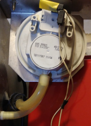 Ezt a presszosztátot gondoltam hogy akkor első körben cserélni kellene, hacsak nem lehetne valahogy ellenőrzni. Az alsó vékonyabb cső az csak az égőtér falán át megy be így gyakorlatilag a kéményből bejövő levegő nyomását adja meg. A felső vastagabb kívül megy hátra onnan már további szétszerelések nélkül nem látszik, hogy merre hogyan hová.