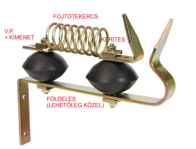 A mellékelt ábrán látszik a lényeg, de youtube-on is vannak magyarázó videók. A kültéri fadobozos kialakítás meg a szabadon lévő dugalj rossz példa, de jól látszik rajta a védő szikraköz, a közelben lévő földelés és az, hogy ezek a kerítésnél legyenek és a villanypásztor távolabbról is kikábelezhető nagyfesz kábelekkel.