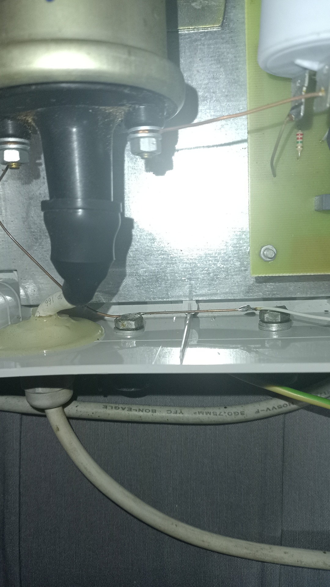 villanypásztor földelés és a hálózati földelés viszonyaÜdv a csapatnak! Egy elvi kérdést szeretnék feltenni. A villanypásztor földelés és a hálózati földelés viszonyáról. A kérdésem: e két földelést galvanikusan össze szabad-e kötni? A google-ban egy helyen kategórikusan tiltják, máshol meg annyit írnak, hogy legalább 20m kell legyen a távolság a két földelés között. Mi a véleményetek? (javítottam egy ceglédi gyártmányt ott lada gyujtótrafó van beépítve ami össze van kötve a hálózati földeléssel/kép lent/)