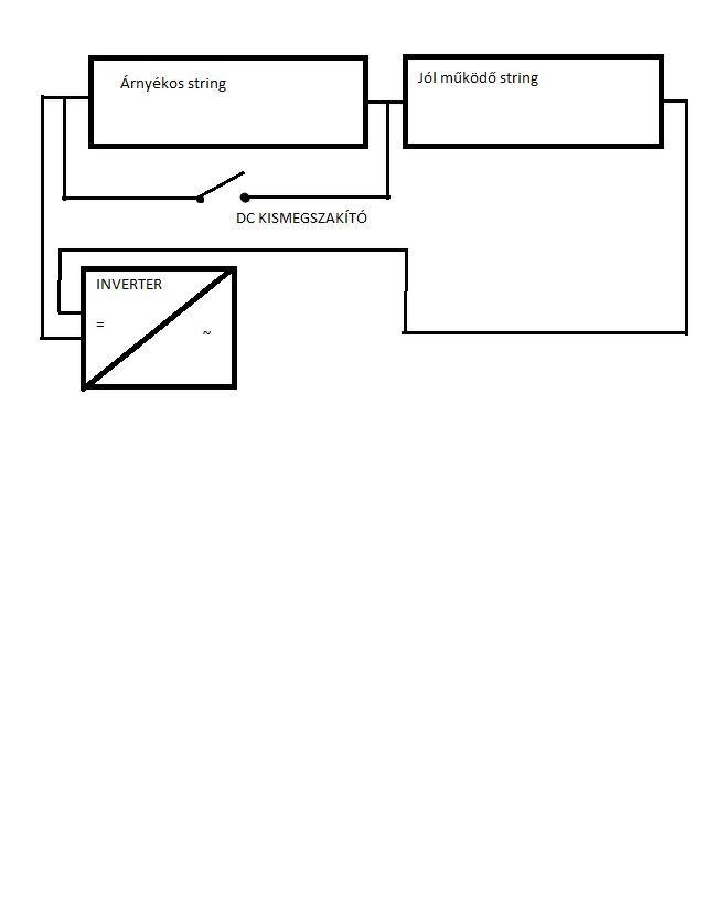 A következő kérdésen gondolkodtam: Adott egy hely, ahol vannak napelemek a garázson, és a háztetőn is. Ezek jelenleg egy stringként működnek, amivel az év nagyobb részében nincs is gond. Most viszont az a helyzet, hogy garázson lévő panelek árnyékban vannak, a háztetőn lévők viszont megkapják a fényt rendesen.