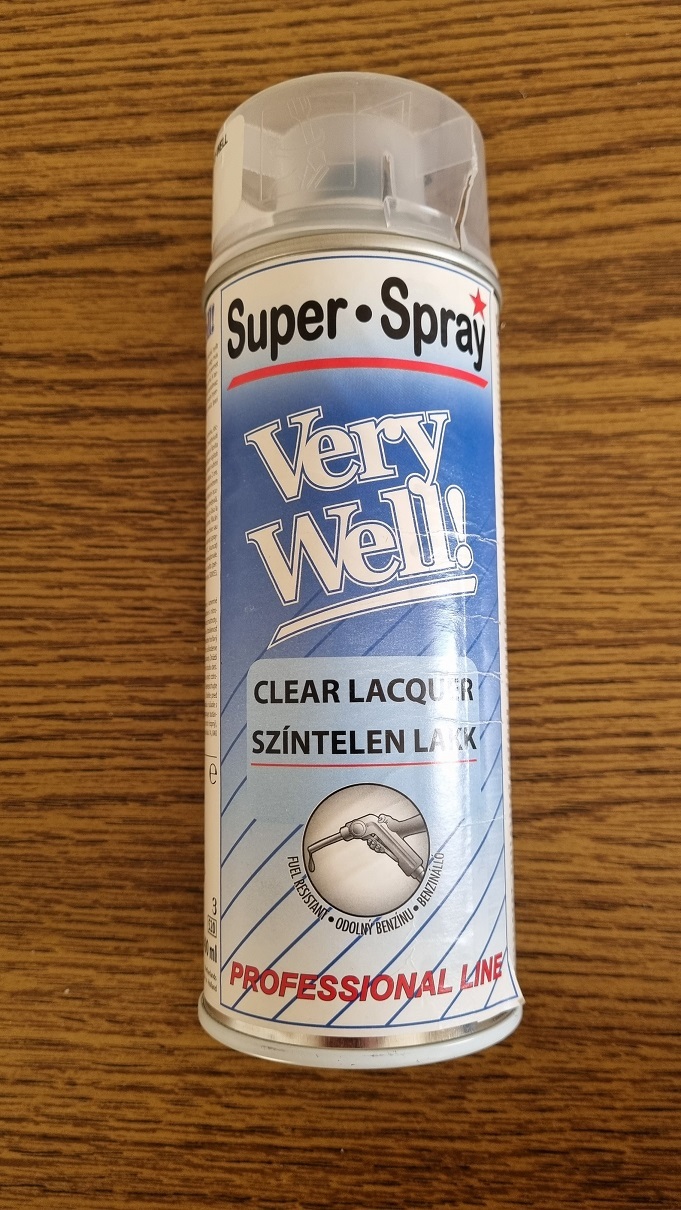 Szintelen lakk, nem tudom milyen oldószeres de forrasztható és tiszta alkohollal lemosható (ha sokáig áztatom)