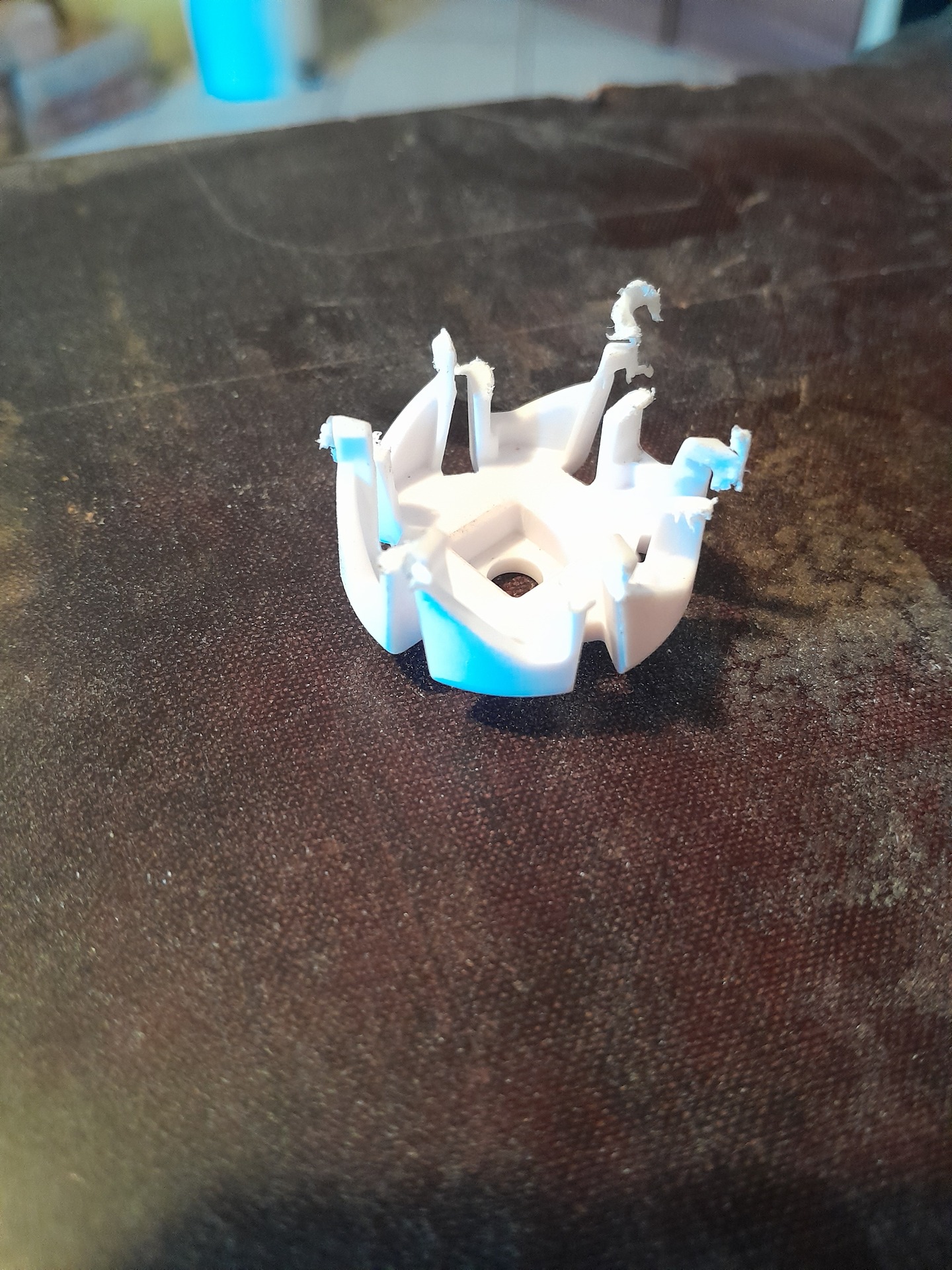 Valószínűleg én vagyok a hibás a törésben. Ezt a tokmányt a 4 gyári csavarjával kellene a menesztő tárcsára csavarozni. De én megigazgattam a hátulját, hogy passzoljon a menesztőmre, kapott 3 menetes furatot és ugyanúgy lett rögzítve, mint egy hagyományos tokmány. Ha a 4 gyári furatnál lett volna rögzítve, az megfogta volna az ellen, hogy szétnyíljon.