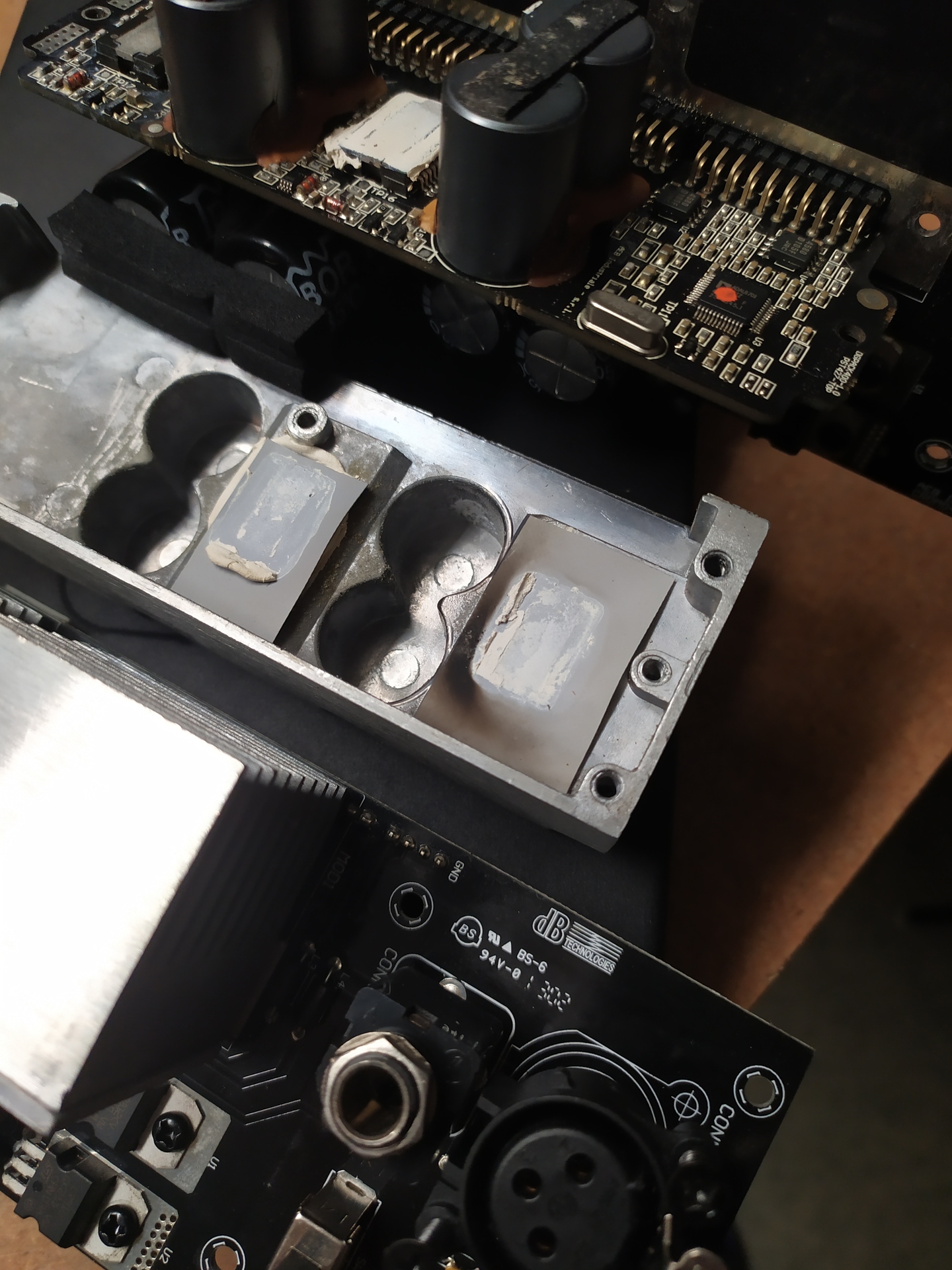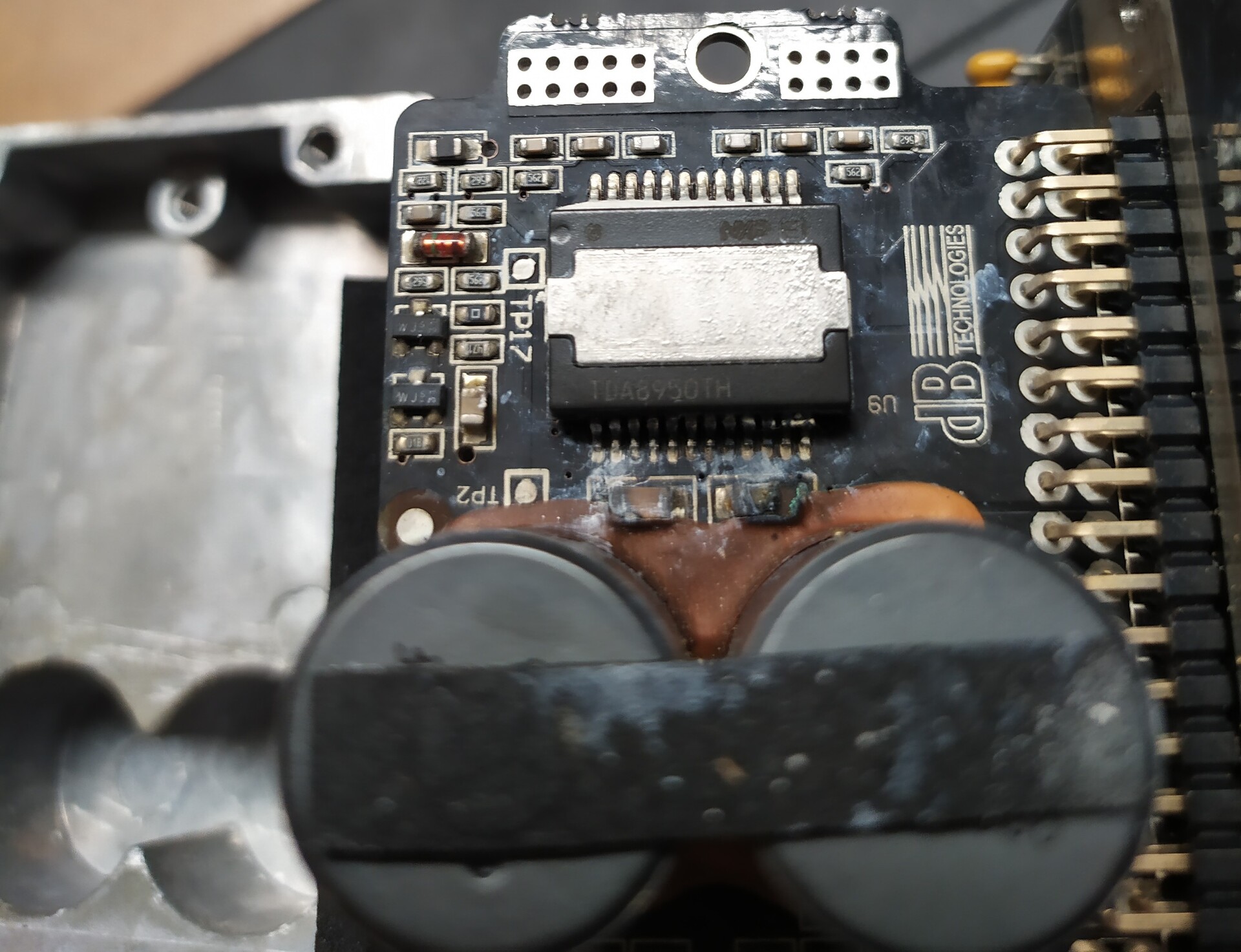 Ezek sem véletlen vannak a polcon. A TDA8950-et már nem gyártják, de ha lenne is, a NYÁK agyon van égve.