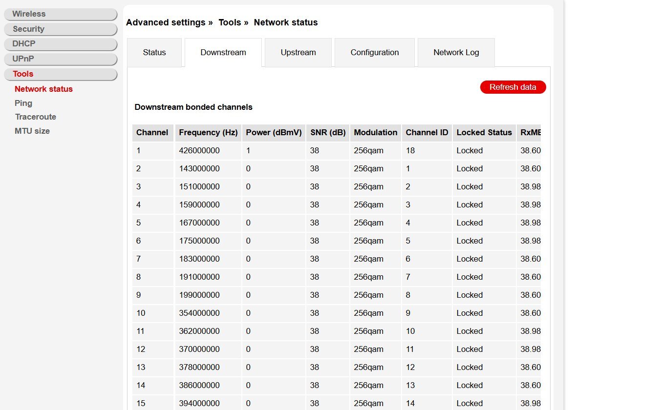 Be kellene menned a Compal box menüjébe és megnézni a Tx/Rx értékeket.