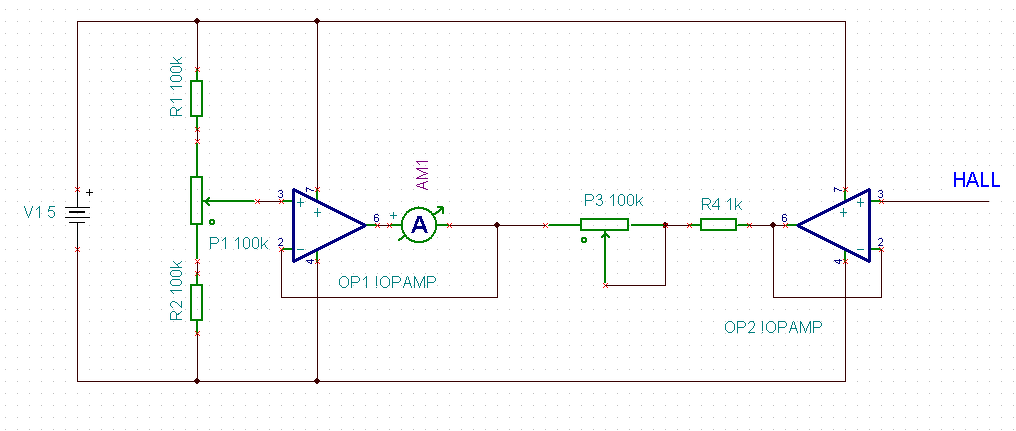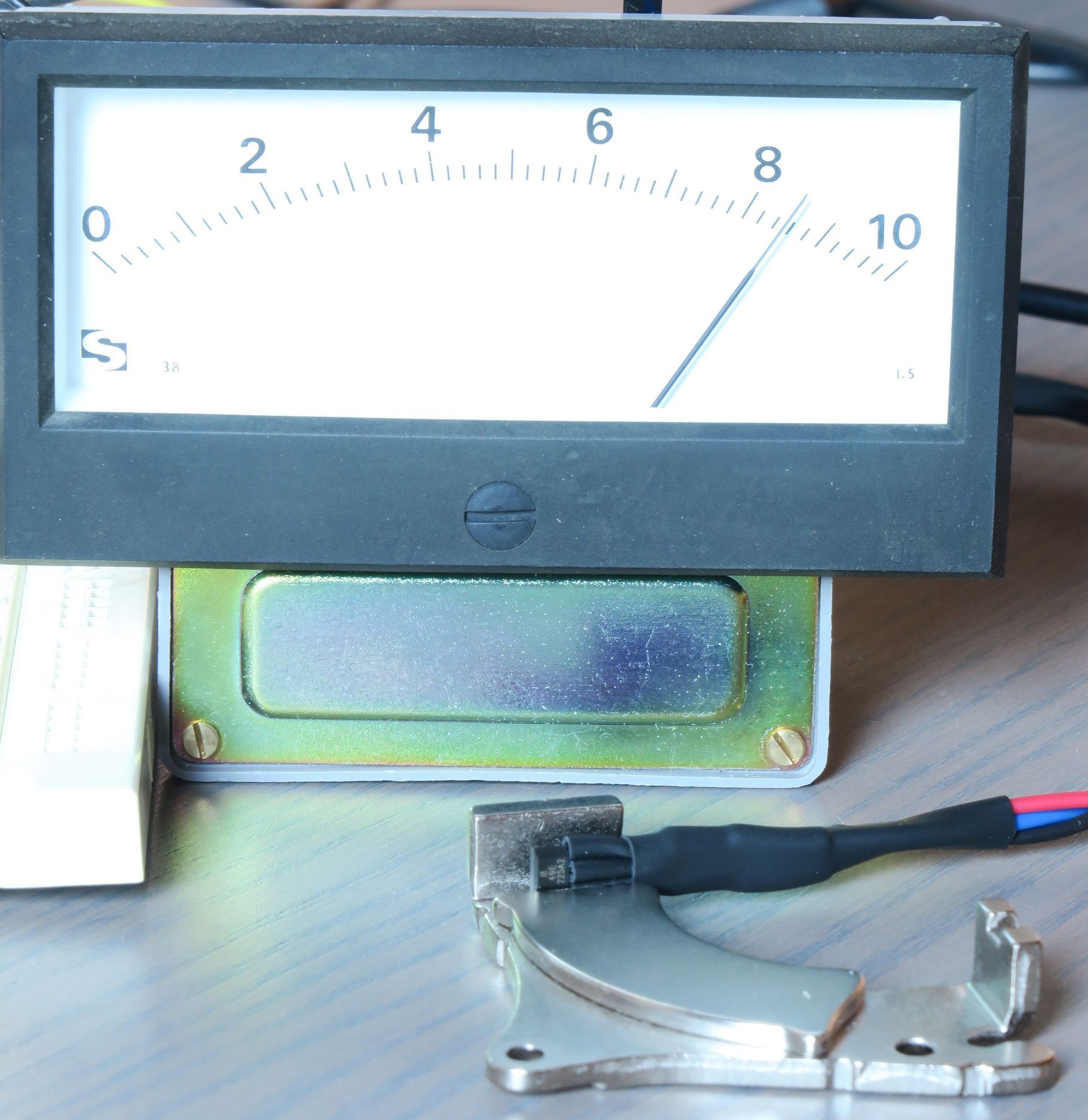Összedobtam én is egyet (simán leosztottam az SS49E kimenetét) de elég érzéketlen lett. Az érzékelőt szó szerint a vinyóból bontott erős neodímium mágnes mellé kell tenni hogy középállásból (2.5V) kitérjen teljesen (~4V). Valami olyan kapcsolást keresnék ami nem 3V-ot fog át hanem 0.3V-ot: tehát 2.2V - 2.8V bemenet mellett adna ki 0-100mV-ot (a 100uA-es) panelműszernek. Ha valaki ilyennel ki tudna segíteni azt megköszönném. Ha olyan a kapcsolás hogy állítható a középállás helyzete (tehát lehet nullázni ha valamiért szükséges) és a maga az erősítés is, az lenne a legjobb.
