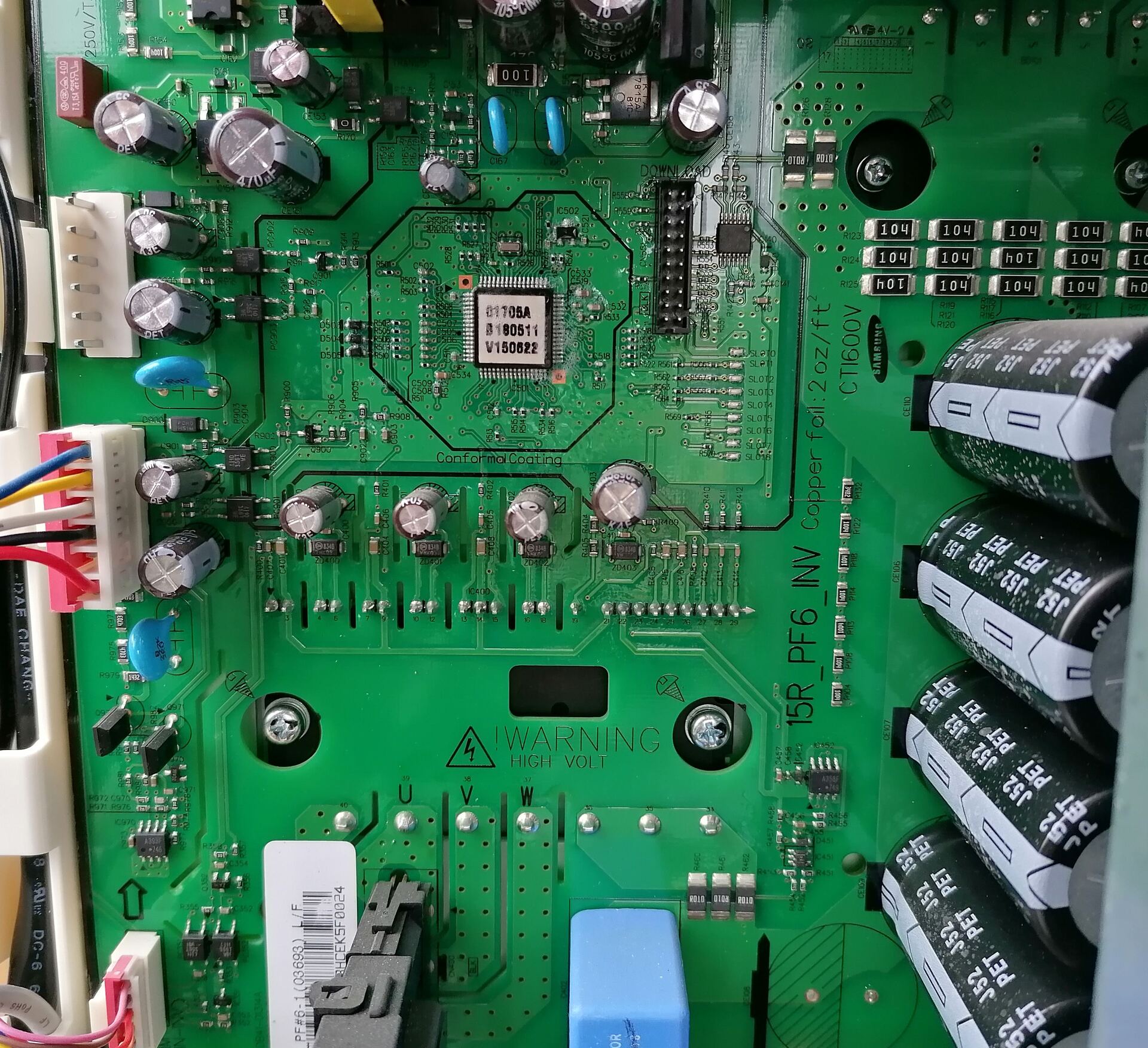 Alighanem a (teljesítmény)jelet kapja az Inverter, ami azzal a teljesítménnyel vezérli a kompresszort, és ugyanazzal a ventit is. Ha ismerném a jelszintet és a frekit, 50Ft-ból el tudnám indítani... Képletesen, mert 50Ft sem kell, van itthon 555 is...