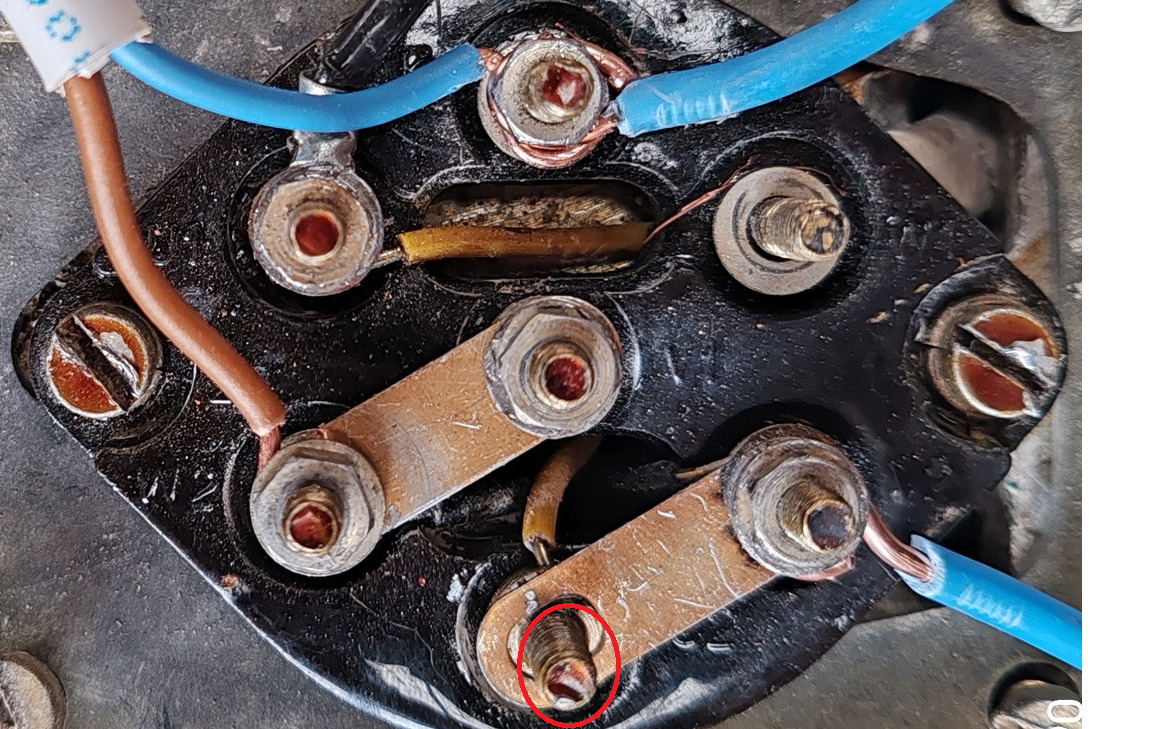 Úgy látszik, hogy a kék szál alatti kötésnél is az alsó anyás kötés ami a tekercs kivezetést szorítja, hogy az is laza lehet azért füstölt és mint ha látszana is ott ennek a nyoma.
