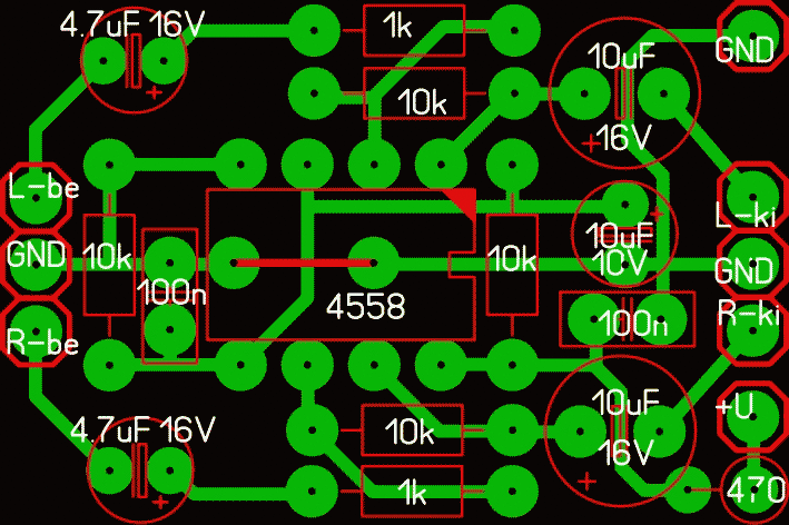 Kérdés : hogy tudnám az előfokot átvariálni szimmetrikus 12V-hoz? Úgyértem hogy választom el , hová kell GND és hová mínusz ág? A 4558 bekötése oké... Illetve találtam egy egyszerű kapcsolást TL072-vel , van ihhon minden hozzá.