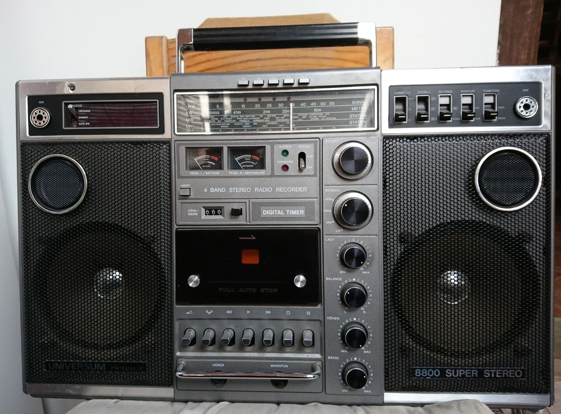 Universum 8800 Super StereoA kincseskamrám mélyéről most sikerült végre kiásnom az én készülékemet.(Egyenlőre csak csak egy fotó erejéig) A neten van több infó, videó és képek róla. Bővebben: Link Rajzot még nem szereztem róla, tizenéve mikor utoljára bekapcsoltam, csak halk suttogás jött ki belőle. A 80-as években gyártották, BIGSTON KSQ 5140 típusként is ismert. 54cm széles, magassága 34,5 cm, elemek nélkül 9,6 kg-os... A hozzászólás módosítva: Ápr 7, 2025