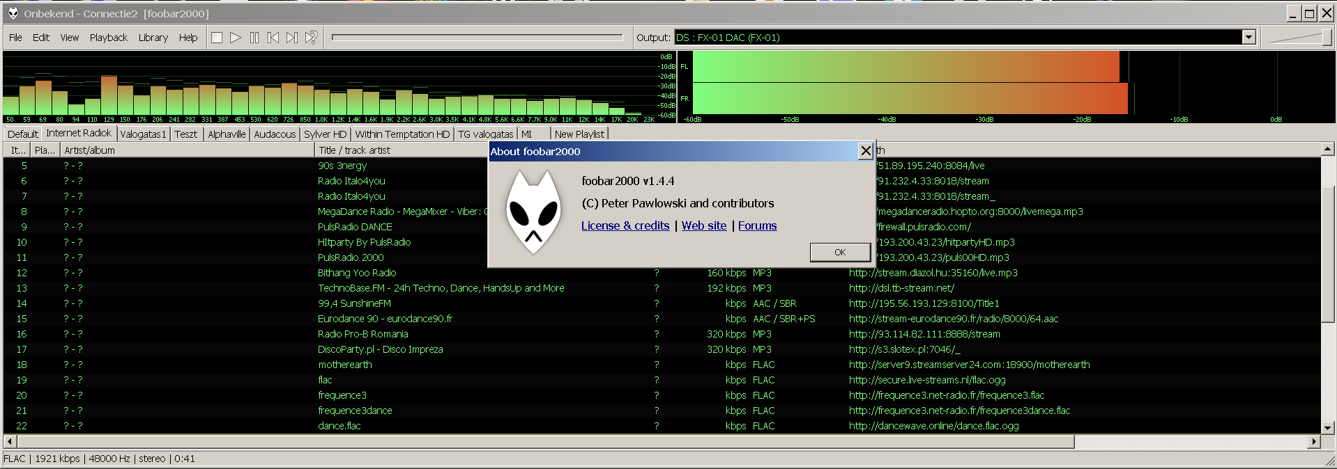 Van amúgy többféle lejátszóm telepítve, nem csak ez, de ezt használom leginkább. Pl. a DSD lejátszást még viszonylag kevés ingyenes program tudja, a foobar mellett, a Tuniac, és az MPC-BE, de pl. a VLC-be ha jól tudom még nem került be, és a winap (és klónjai)-ba sem. Bár a legfrisebb verziókat nem néztem. Viszont ASIO drivert sem mindegyik lejátszó támogat.