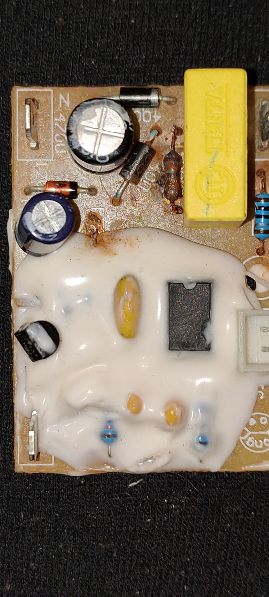 Attól félek hogy nem lesz olyan szerencsém , hogy csak ez az egy alkatrész hibásodott meg Egy régi gőztakarító gépről van szó és több mint 10 évig a padláson porosodott ,már régen is azért lett elrakva mert nem akarta kinyomni a gőzt! Most pár hónapja elővettem ,gondoltam megnézem hogy mi lehet a baja? Amikor bekapcsoltam kis idő után egy nagyon "robbant" Szét szedtem és az egyik szilikon cső robbant szét benne , rájöttem hogy a fúvóka volt eltömődve és ez miatt túlnyomás keletkezett! ha előre tudtam volna akkor csak annyit kellett volna tennem hogy a fúvókát kitisztítom de... Sajnos mivel a cső szétrobbant a gép belsejét is elárasztotta a víz, de azt gondoltam hogy ha rendelek új szilikon csövet és kicserélem akkor működni fog! Sajnos nem így lett Ez a gép úgy működik normál esetben hogy először felmelegíti a vizet a "kazán" és utána bekapcsol egy szivattyú motor ami a forró gőzt kihajtja, most viszont nem kapcsol be a szivattyú ,azt a hangjáról is lehetne tudni mert berregő hangot ad. Van benne egy panel ami be van vonva szilikonnal ,pont a pára alkatrész lábainak jutása elkerülése végett! Viszont a fesz.szabályzó alkatrész lábait szabadon hagyták! Teljesen el is volt már rozsdásodva és azért is tört le. Nem tudom hogy csak ez az alkatrész hibásodott meg ,de az is lehet hogy csak az elkorhadt lábai törése okozta a hibát, vagy esetleg más alkatrész is? Ezt csak úgy tudom meg ha visszarakok egy új szabályzót , vagy esetleg műszerrel bemérni az olyan alkatrészeket amit lehet,. sajnos a nyáklapon van egy ic amin semmilyen felirat nem látható! Akárhogy próbáltam lefényképezni egyszerűen nem látszik semmi és igazából nincs is rajta semmilyen felirat! Így ha az is hibásodott, kitudja milyen ic lehet? Feltöltök róla egy képet hátha valakinek lenne tippje Ez egy 8 lábú ic van még egy alkatrész aminek a típusa ha jól láttam : T13109H a többi alkatrészmár nem jelent gondot mert kondenzátor ,ellenállás és egy zéner dióda.