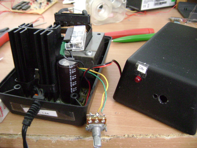 Átalakítottam egy régi tápot szabályozhatóra, 1,2-20V-ig lehet állítani. Volt benne egy LM317T IC, ami 17,5V-ra volt beállítva ellenállásokkal, kiszedtem az ellenállásokat, és egy kis számolás után kapott újakat és egy potmétert. Kapott még egy bekapcsolás jelző ledet, és egy biztosítékot ami jelenleg 2.0A-es.