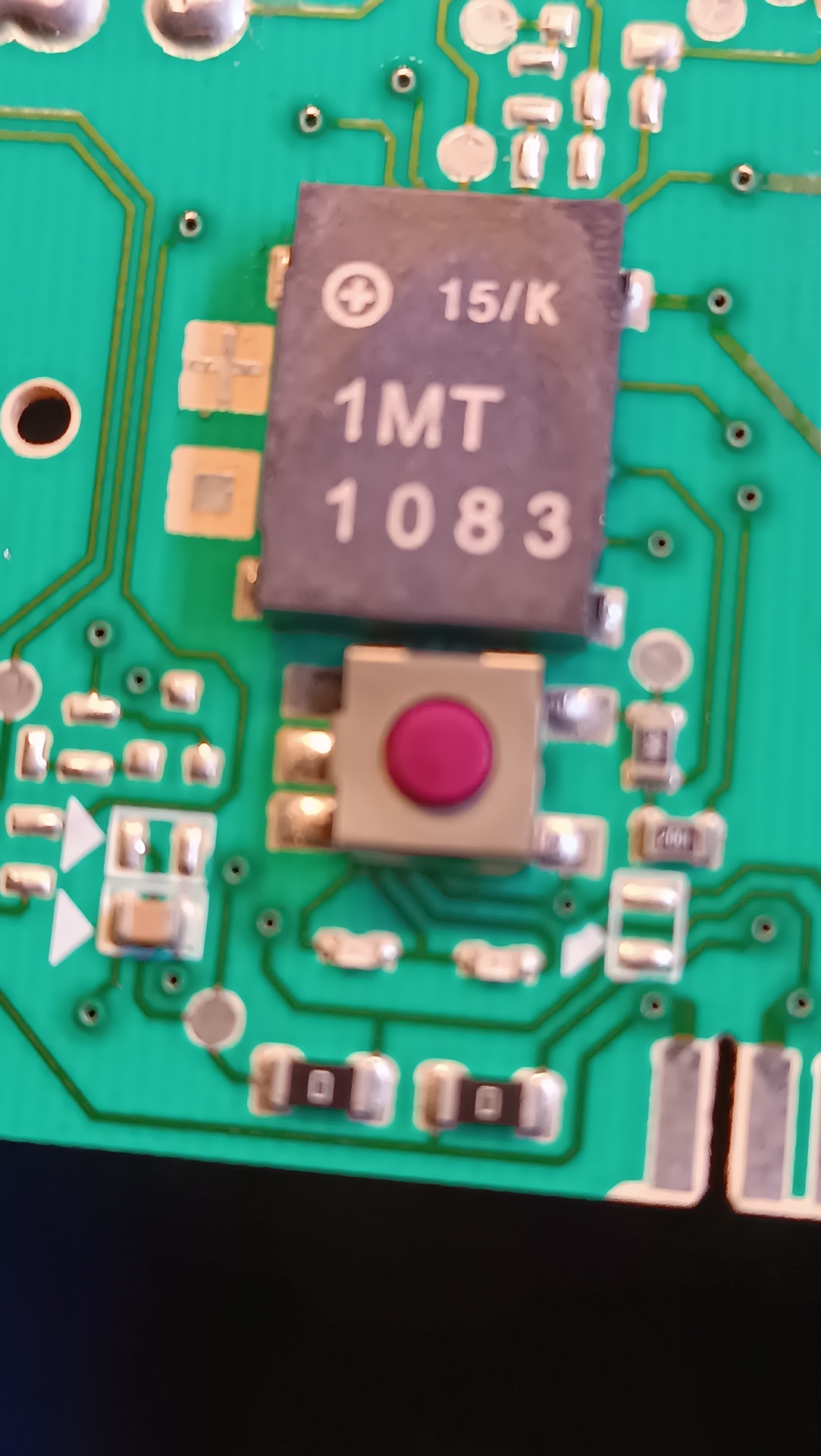 Üdv. A nyomó gomb melletti alkatrészről kellene információ. A + szal jelölt és a vele szemben lévő kivezetések között zárlat van az összes többinél nem mérhető semmi a multiméter dióda állasban van.