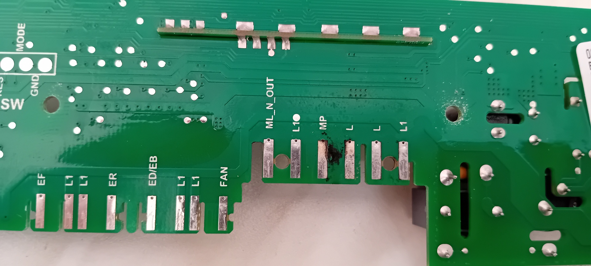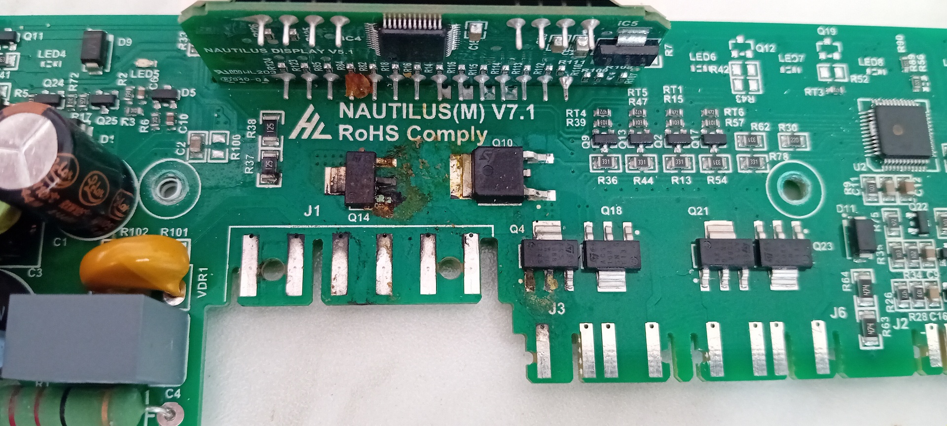 A kép alapján beázásra tippelek. ACS van benne, ami ad némi reményt, hogy javítható. Már csak ki kell cserélni majd megtisztítani a panelt és feltárni, hogy mitől kerülhetett oda nedvesség.