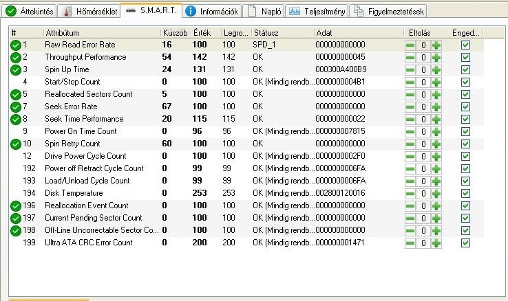Sata-ra van dugva az alaplapra, nem USB-átalakítóra, mind a 4 portot végigpróbáltam az alaplapon. Már egy jó pár napot futott a teljes felület újrainicializálás óta és nincs semmi változás a S.M.A.R.T. információkban. A lemásolásnál nincs lassulás a sebességében, rendesen működik.
