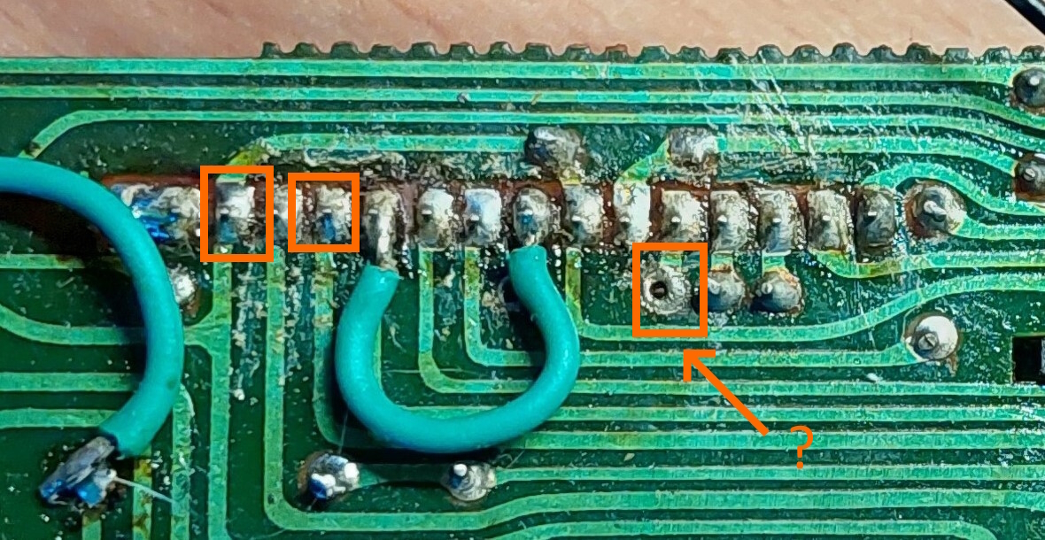 A kijelzőt kiforrasztottam hogy megnézzem a zebragumit. Az áthidalások azok gyári megoldások mindkettő. Annyi, hogy a gyári áthidaló vezetékeket kicseréltem újakra. Lehet nem kellett volna, mert így csúnyább. Csak ugye, a kijelző csak egy kis ideig látszott és akkor is halványan. Gondoltam, nehogy el legyen oxidálódva ez a kis vezeték és azért kapjon kevés tápot valahol.