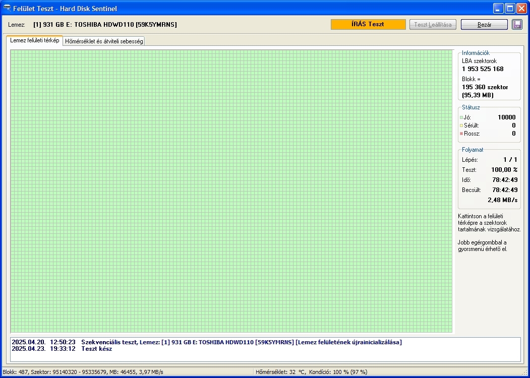 Sata-ra van dugva az alaplapra, nem USB-átalakítóra, mind a 4 portot végigpróbáltam az alaplapon. Már egy jó pár napot futott a teljes felület újrainicializálás óta és nincs semmi változás a S.M.A.R.T. információkban. A lemásolásnál nincs lassulás a sebességében, rendesen működik.