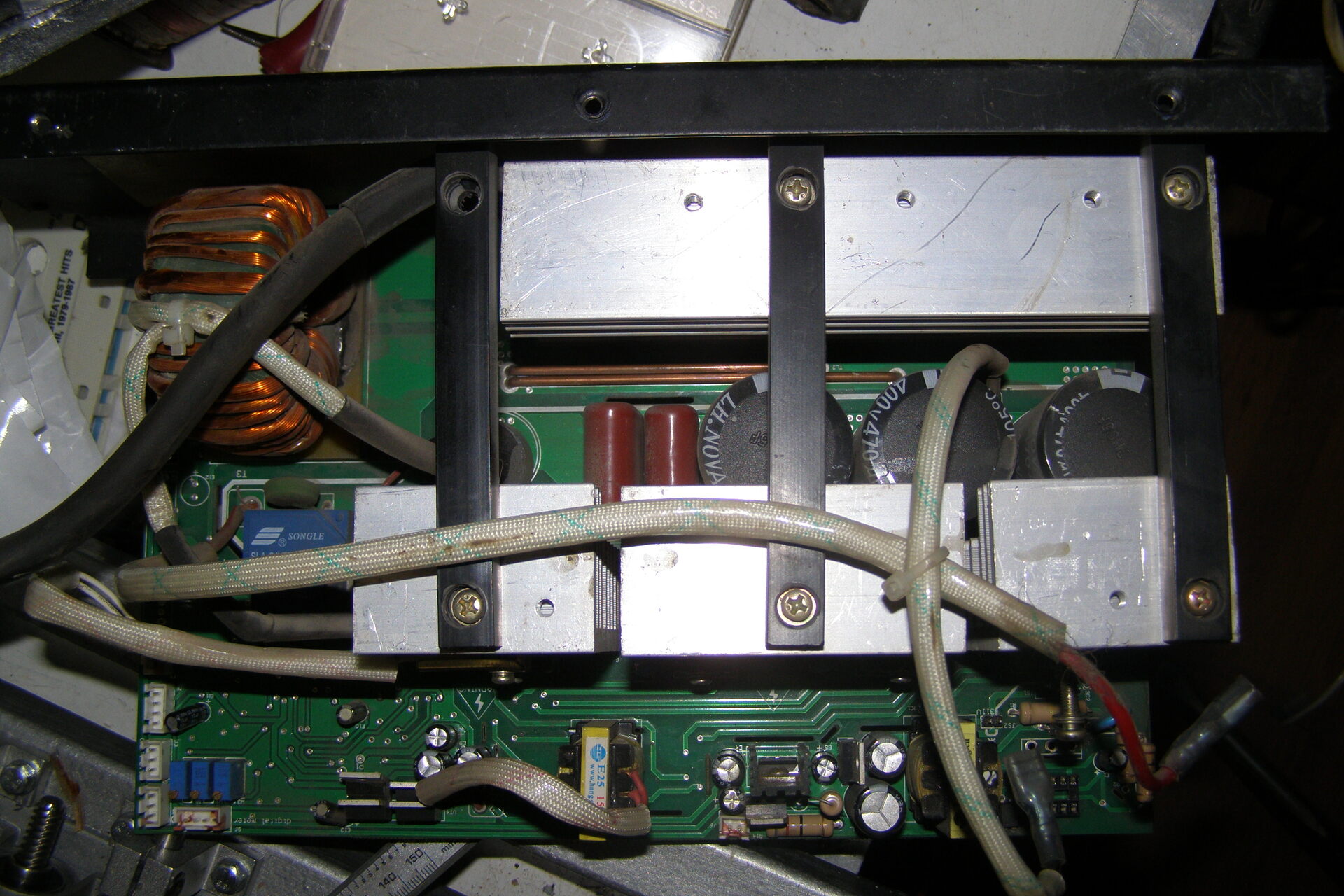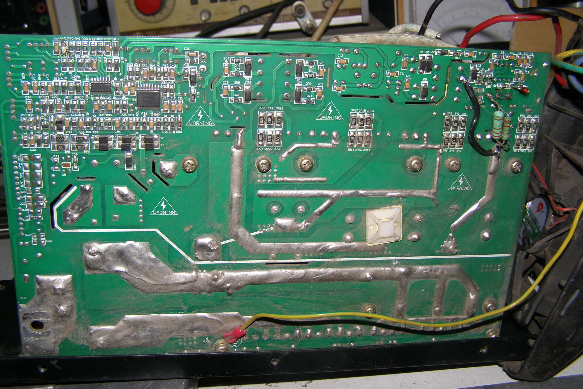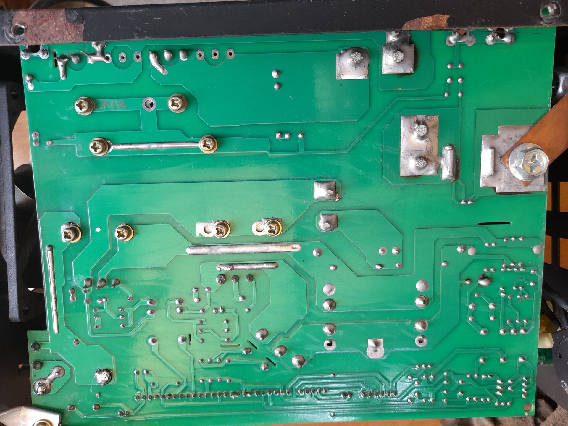Güde 100 PMÜdv mindenkinek! Güde GC 100 PM inverteres hegesztő kapcsolási rajzot keresek. Mindkét igb zárlatos.Inverter beazonosításSziasztok! A fotókon látható inverter beazonosításában kérnék segítséget, hátha felismeri valaki a panelt, vagy egyáltalán mihez hasonlít. A MÉH telepről kukáztam ebben az állapotban. Az elejét a kezelőszervekkel és a burkolatot már "megmentették", vagy ki sem dobták. Próbálták "javítani" is, mert valamilyen megfontolásból a segédtáp vég FET helyére valaki rakott egy BD241-et és a hálózati diódahíd el volt tűnve belőle. A panel is szét volt gányolva a segédtáp részén. Kapott egy új UC3845-öt foglalattal, FET-et, egy 18V-os zénert, 2 ellenállást és a panel is restaurálva lett nagyjából. A cucc beindult, dolgozik szépen, a feszültséget leadja, viszont nem tudom a szabályzó poti hova volt kötve ill. a ledek. Több a csatlakozó is, mint ami feltételezhető. A "display" felirat rá van pingálva a panelre, de az annyira nem érdekel. A vezérlés egy UC3846D-ből és talán TL084-ből áll(ez utóbbit nem tudom leolvasni). Ha valaki segítene beazonosítani, esetleg egy rajzrészlettel kisegíteni amin hasonló a vezérlés és a potméter is rajta van, azt nagyon megköszönném. Üdv
