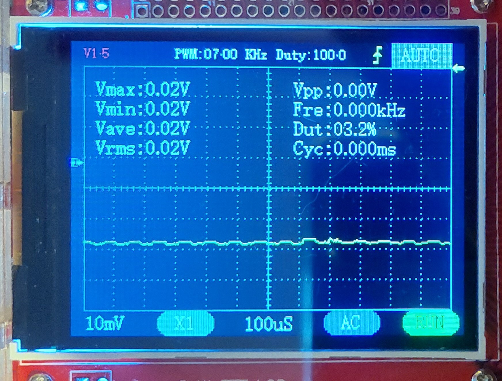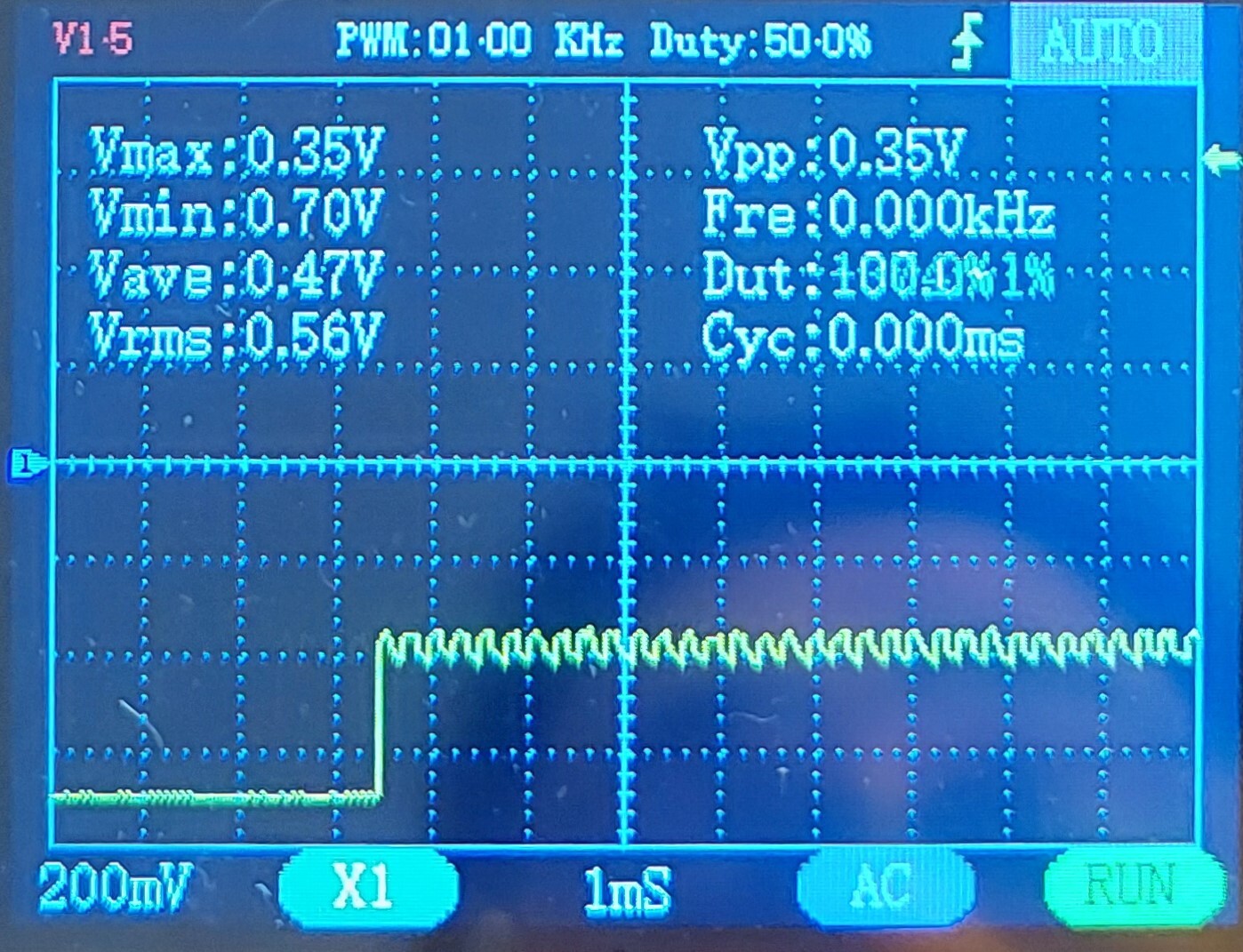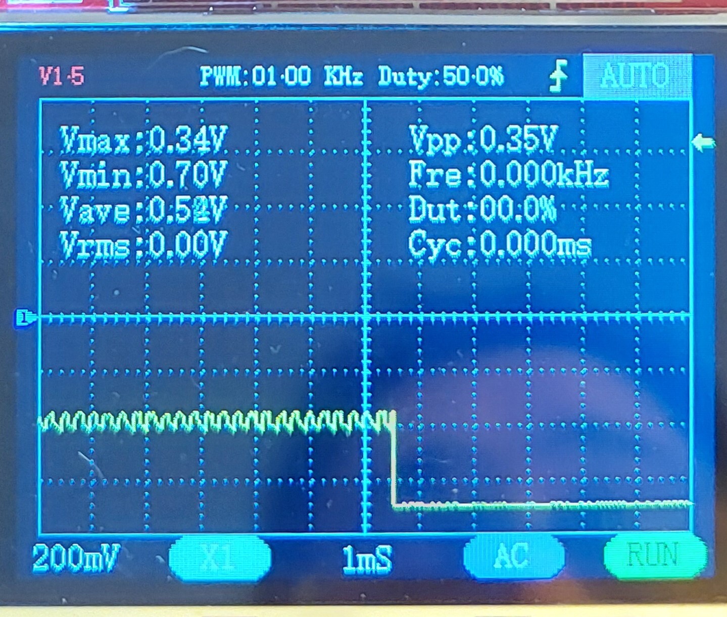 Hello! Igen, valami hasonlót. De a szkópon 4-5 periódust kellett volna beállítani, hogy frekit is tudjon mérni a szerencsétlen.. És néhányszor elmondták, hogy DC-ben kellene mérni, nem AC-ban..