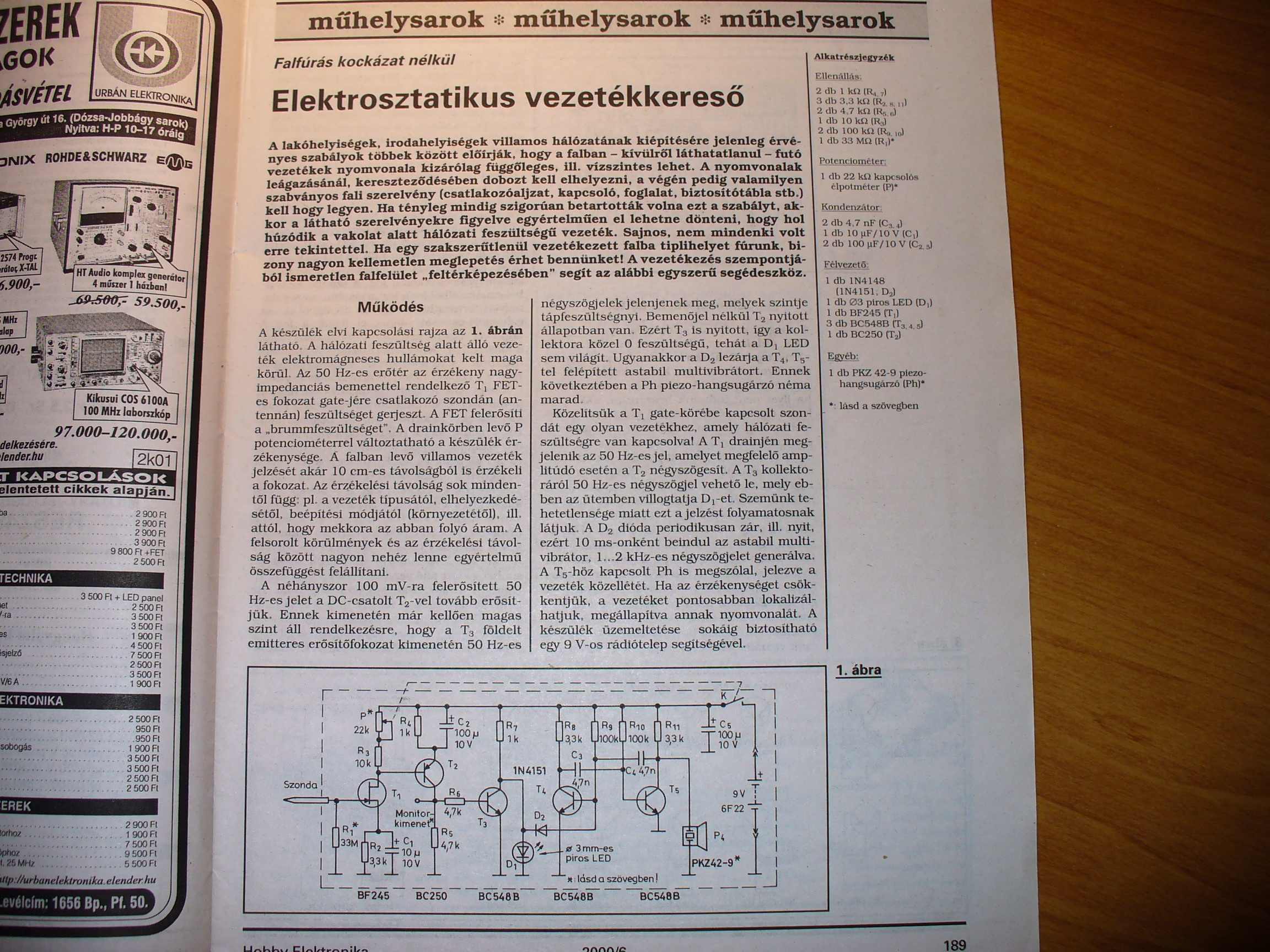 Szerintem nem teljesen jó a fémkereső. Nem vagyok biztos, hogy ezek az egyszerű kapcsolások képesek lennének a falban néhány cm-re lévő vezetékek érzékelésére, de ez csak az én véleményem... Amúgy hobbielektronikában volt egy leírás, kifejezetten vezetékkeresésre. Elektrosztatikus elven működik.