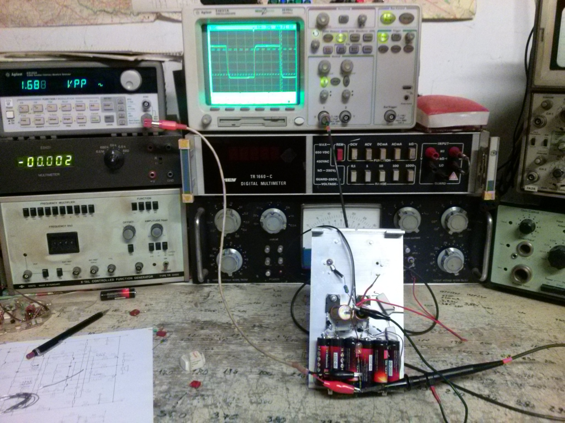 Még a legelső deszkamodell kapcsolásról van szó. A kimeneten a két SAL doboz párhuzamosan (az impedancia minimum 3 Ohm körüli, a fázistolás +/-60 fok úgy emlékszem, nem találom a mérést). Dirrdurrcsittcsatt zene: a CAM4144-en.