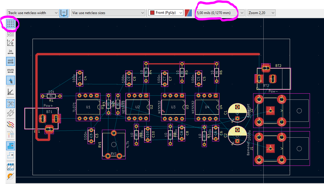 Ráadásul be van állítva 5 mil gridméret, az oldalsávon a grid ON, de ahogy a képlopás is mutatja, ez tuti hogy nem 5 mil... A hozzászólás módosítva: Jún 6, 2025