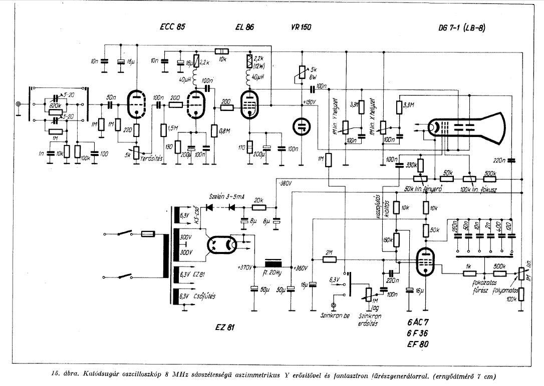6LO1I csővel egyszerű analóg szkópÜdv!Van birtokomban egy 6LO1I típusú kicsi szkóp cső és arra gondoltam életre kelteném. Ez lenne az első alkalom hogy képcsővel dolgozom így van néhány dolog ami nem világos a szkóppal kapcsolatban. Itt a topicban találtam egy nekem tetsző kapcsolást amit mellékeltem is. Az első kérdésem az lenne hogy megépíthető-e ezzel csővel a mellékelt kapcsolás? A fűrészjel előállítása mihez kell? Nem szükséges hogy 8mhz sávszélességű legyen, bőven elég 1Mhz.