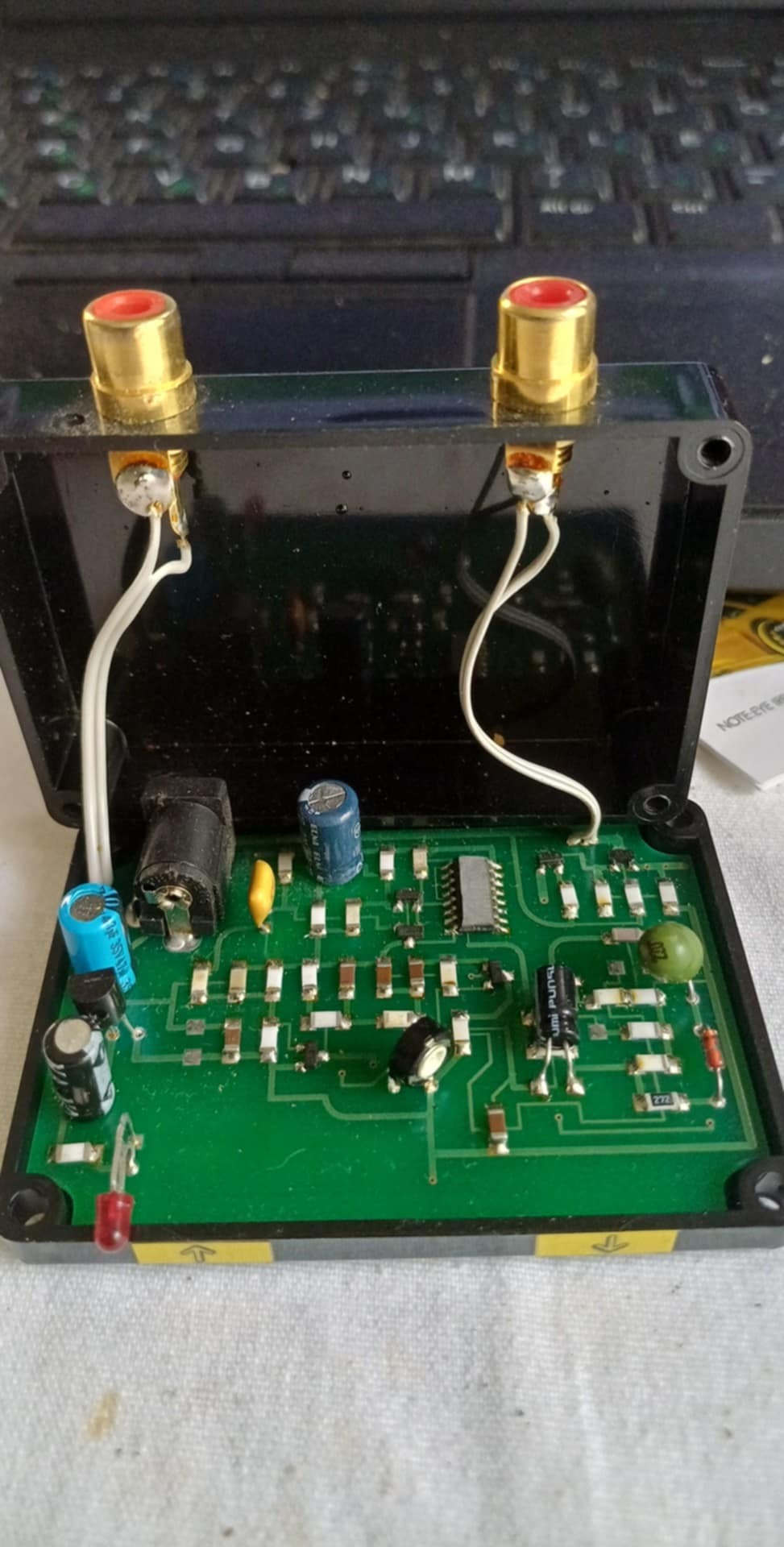 Talán valamilyen erősítő. A NYÁK maga gyári, de ami előtte és után van, nem. Vonalvezetés, hátukra fordított ellenállások, felhasznált egyéb anyagok stb.
