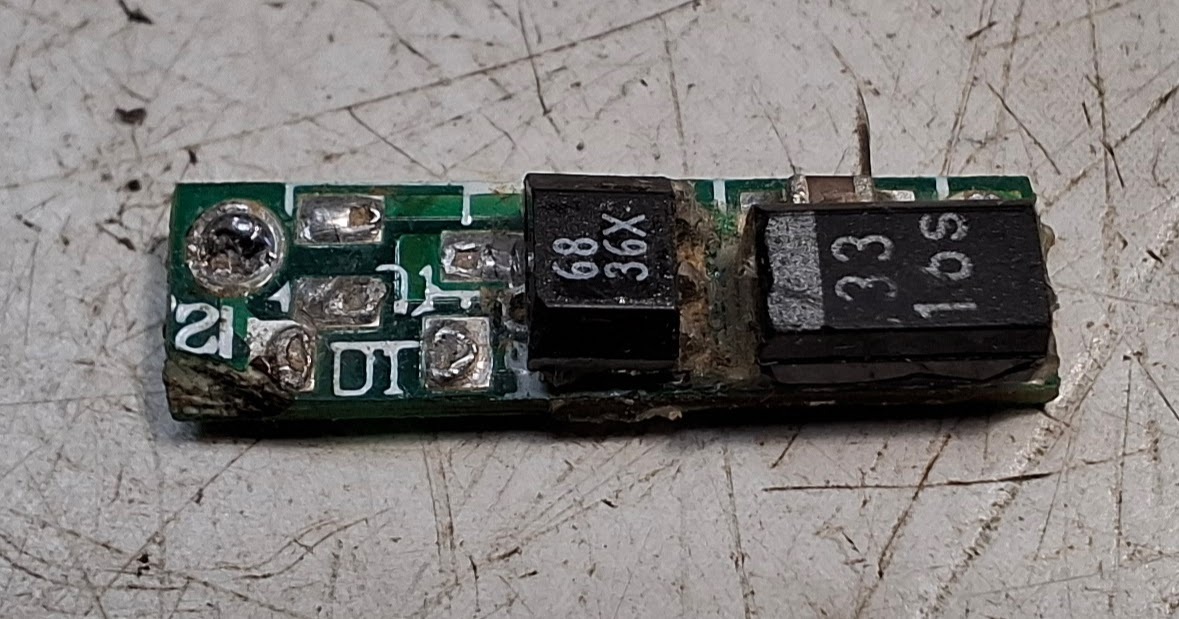 Nem bontottam meg, nem is állítom hogy értek hozzá, de szerintem nincs a nyák másik oldalán semmi. Megpróbálom kifordítani. A motor ide-oda forog igen, nem körbe. És a zárlatos TVS nélkül működik a motor, ide-oda forog polaritás váltáskor. Végálláskapcsoló nincs, komutátort nem látni, az alja rá van préselve.