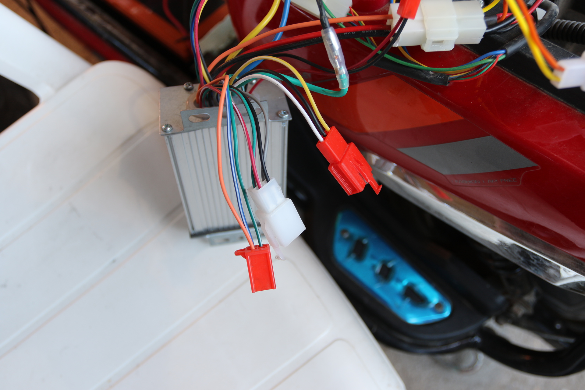 A piros színű hármas csatlakozóba való a fehér csatlakozó. A többit, aminek nincs párja, hagyd szabadon. Ha nem találtál más hibát akkor kipróbálhatod a motort.