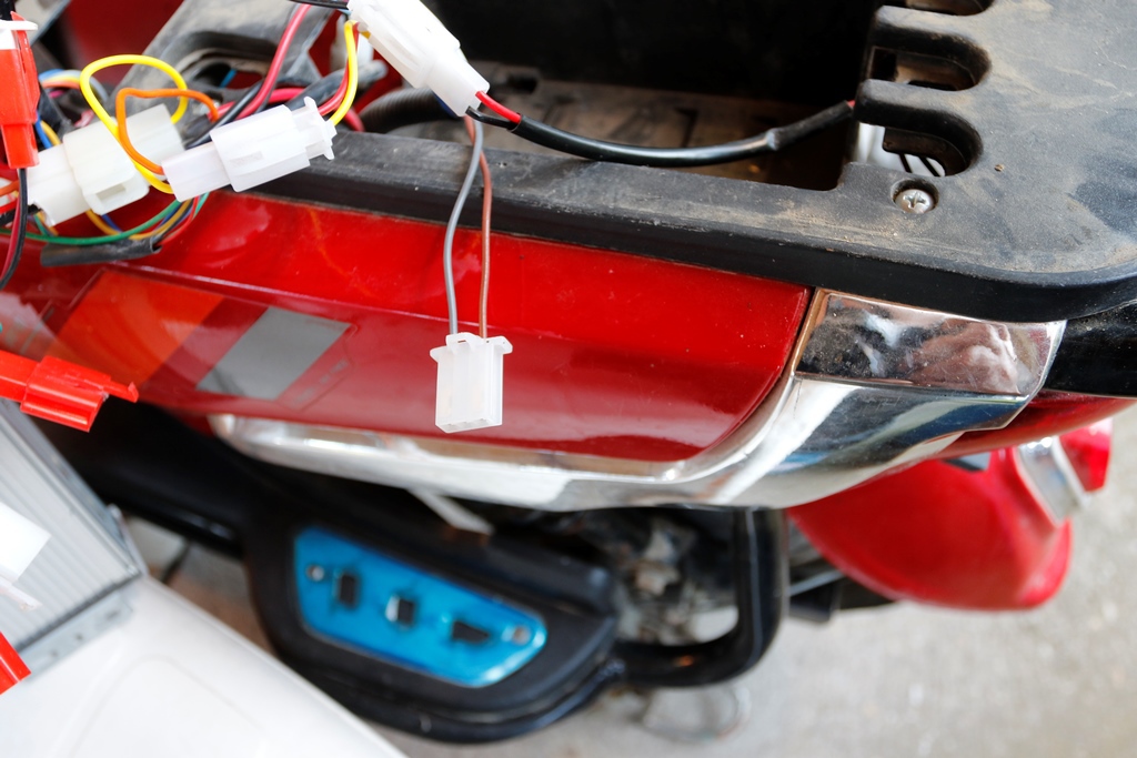 A gázkar mellett van egy 3 állású kapcsoló, oda csatlakoznak a vezetékek. A kapcsoló a három sebesség fokozatot kapcsolja. Remélem, hogy tudtam segíteni.