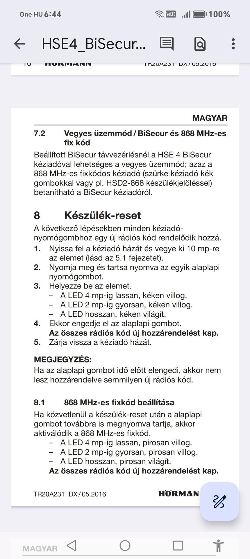 hörmann lineamatic vezérlésSziasztokTanácsot szeretnék kérni. Régebbi Lineamatic vezérlésű úszókapum van. Nyitás után, ha be akarom zárni nem mozdul. nyitás gombra nyit.--mindegyik távirányítóval ezt csinálja. Ha újra tanítom, egy darabig normálisan üzemel, nyit-zár ahogy kell. de kb fél óra után, ismét előjön a hiba. A piros LED 2x villan.
