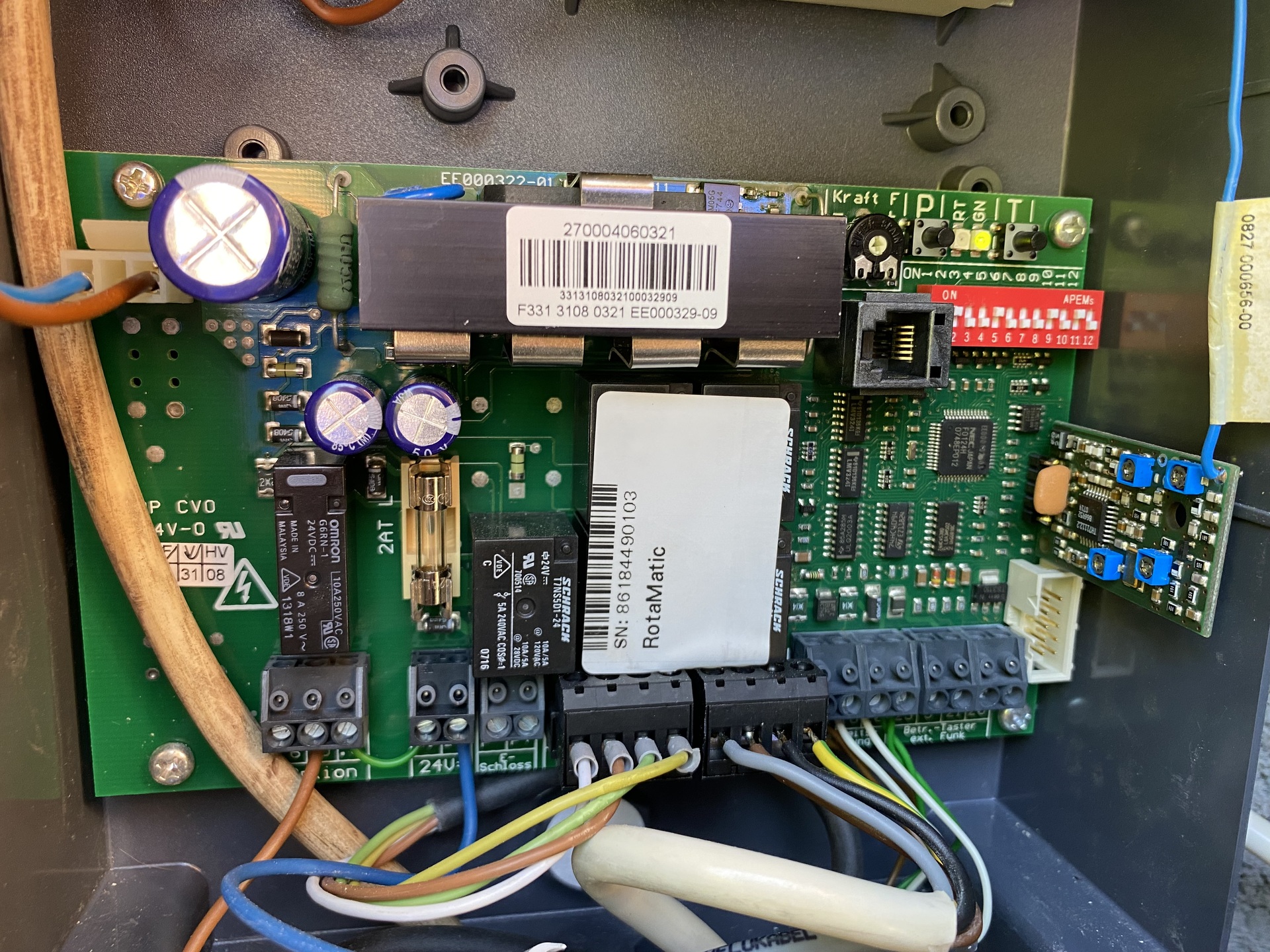 hát nem sikerült.... mérgemben vettem egy gyári EL301 infrát, azzal ment is 3 perc alatt minden, mindent is tudok állítgatni a DIL-ekkel, két kérdés maradt bennem 1) nem lehet azt elérni, hogy az automatikus kapunyitás ne csak teljesen kinyitott, hanem félig nyitott állásból is becsukja a kaput? ezt nem sikerült megugranom. Lehet ilyet 1általán? 2) mivel nekünk nincs kiskapunk csak a nagykapu az 1etlen bejutási pont, így ha történik valami az infra sorompóval (ami a kapun belül van) akkor nincs más csak a kapumászás. Na ha ebbe a feleségem belefut, akkor nekem annyi. Tervem: a 0 és 5V kimenetekre rárakok még egy vezeték párt, amire egy nyomógombos kapcsolót. A kapcsoló az utcáról elérhető lesz ha benyúl valaki a kerítéslécek közt. Így ha az infrával baj van, csak benyúl, gombot nyomva tart, távval kapu nyílik. Ez elméletben szépen működni fog. Kérdés: jobb ötlet ennél a problémára? köszi Rotamatic vezérlés egy idő után megmakacsolja magátSzervusztok!Olyan problémával szembesültem,amit még nem tapasztaltam. Az alany egy Hörmann Rotamatic kapuvezérlő,ami pár hét üzem után megáll. Gyári reset ués a hozzátartozó beállítások után megy,minden rendben lévőnek látszik. Amikor bekattan az agya,a nyitási parancsra,az mindegy,hogy távval vagy a megfelelő kontaktok rövidre zárásával,nem nyit, csak a piros LED villan kettőt. Ez a manuál szerint a biztonsági rendszer hibás működésére utal. Amiben az a fura,hogy ebben nincs infra beépítva,a két kapocs közé be van téve egy 8,2kOhmos ellenállás. Programozáskor azt a furcsaságot vettem észre,hogy az egyik szárny betanításakor a piros LED nem alszik el,mikor eléri a végálláskapcsolót a motor.A végálláskapcsoló működik,azt műszerrel ellenőriztem.A két motorban lévő panelt nem cseréltem fel még egymással. Tud valaki egy kis útmutatást adni,hogy hogyan is oldotta meg a Hörmann a 2 vezetéken a végállást és az impuzus számlálást is? Sejtésem van róla,az ezen az oldalon (elektrotanya.com) talált visszarajzolt panel alapján próbáltam kiokoskodni. A panelt elhoztam,letakarítottam,át is forrasztottam a szerintem kritikus helyeken,de sok mindent nem láttam rajta. Lassan vissza kell vinnem,jó lenne,ha nem volnék havi vendég az ügyfélnél. Köszönöm előre a segítségeteket! István Idézet: „Sejtésem van róla,az ezen az oldalon (elektrotanya.com) talált visszarajzolt panel alapján próbáltam kiokoskodni.” Én kicsivel a tanyás rajz keletkezése előtt szívtam pont ezzel, így variációk témára: https://github.com/martonmiklos/Hormann_EE000591_reveng_schematic Idézet: „ Tud valaki egy kis útmutatást adni,hogy hogyan is oldotta meg a Hörmann a 2 vezetéken a végállást és az impuzus számlálást is?” Áramot mér, a motor hall enkódere illetve e végállás kapcsoló különböző árammal terheli meg a főpanel bemenetét. Idézet: „át is forrasztottam a szerintem kritikus helyeken,de sok mindent nem láttam rajta.” Azt a pár elkót cseréld.