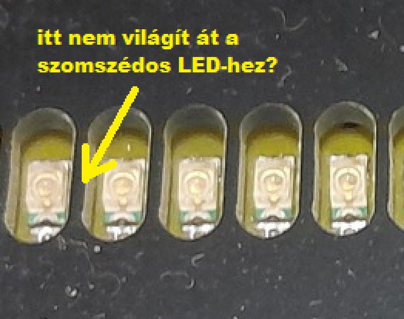 Mi azt ( profiberenedezés 48 lapos LEDdel) , hogy a LEDek közé harmonika szerüen egy 5 mm széles vékony fekete müanyagszalagot (filmet) huztak be hölgyek.